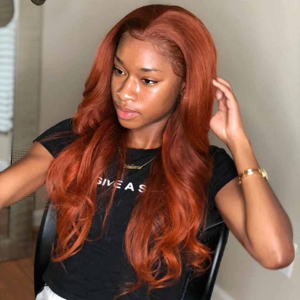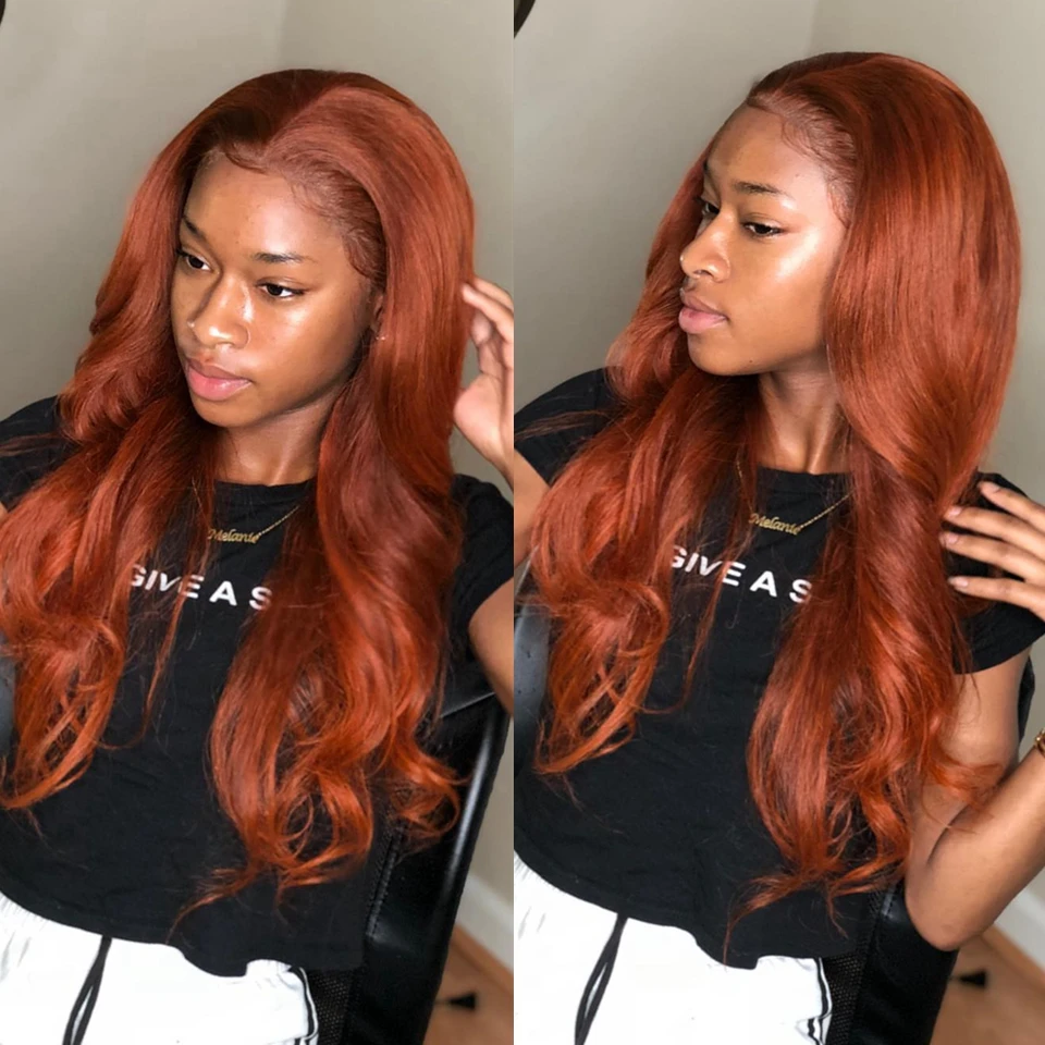 Имбирный оранжевый парик человеческие волосы 180 плотность парик шнурка предварительно собранные человеческие волосы глубокий кружевной человеческие волосы Реми кружевные парики Отбеленный узел