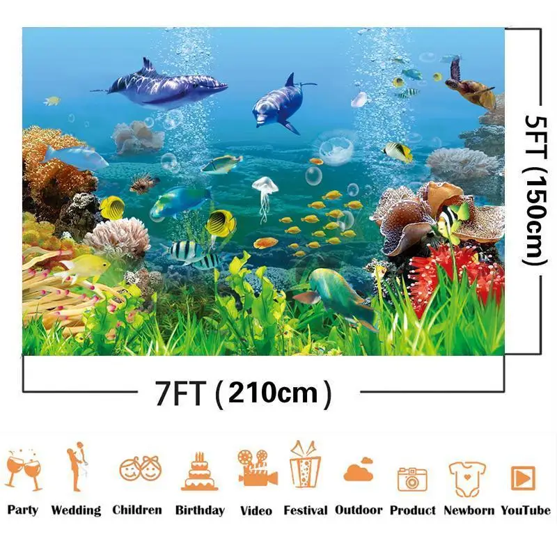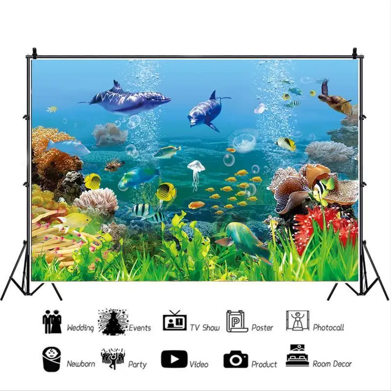 Фон для студийной фотосъемки с изображением подводного мира рыб детей морских водорослей акул декорация для детского дня рождения