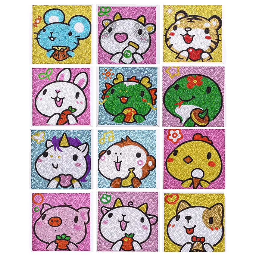 Наборы для алмазной живописи для детей, цифра со стразами картин, 12 китайских зодиаков