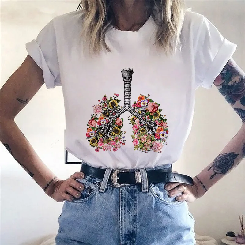 Kawaii мультфильм футболка Мода Сердце цветок графика леди девочек тройники 2021 Печать повседневные женские хипстерские футболки
