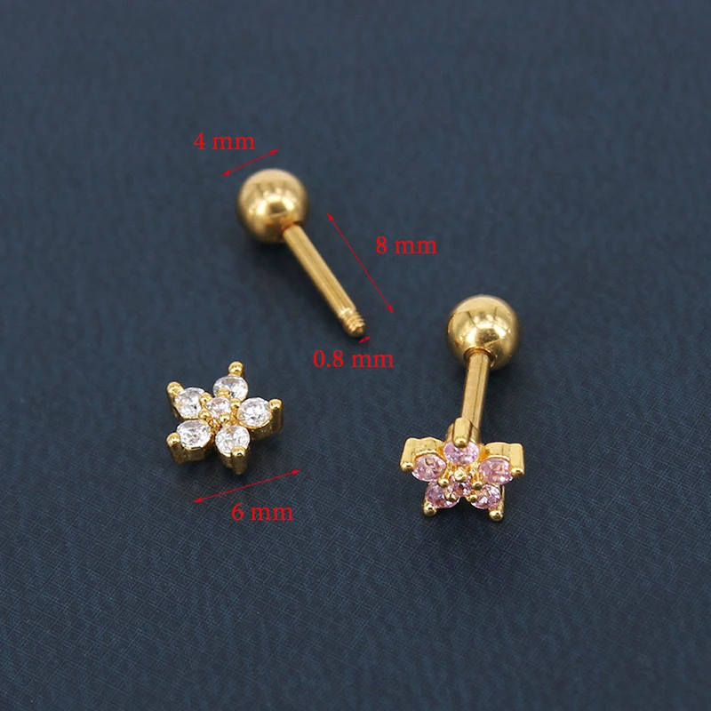 Серьги-гвоздики из нержавеющей стали в минималистичном стиле, маленькие украшения для пирсинга с крошечным хрящевым покрытием, с цветным цирконием в форме звезды и цветка, ювелирные изделия