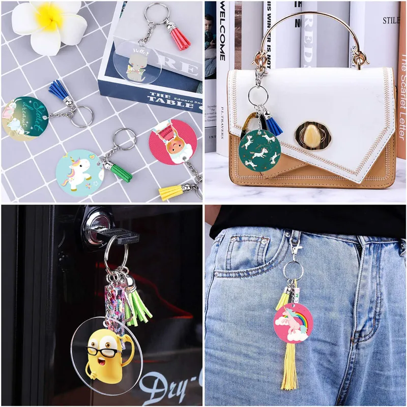 Наборы акриловых брелоков для ключей, прозрачные круглые Брелоки для ключей, прозрачные круглые акриловые заготовки для брелоков для ключей сделай сам