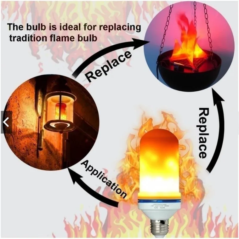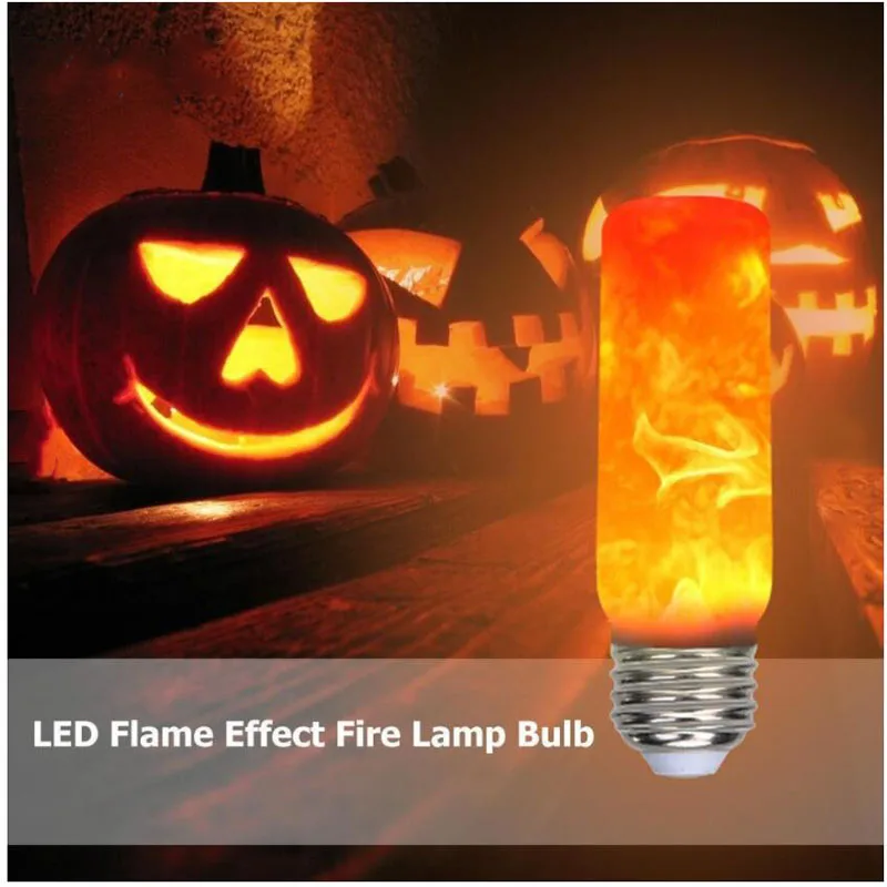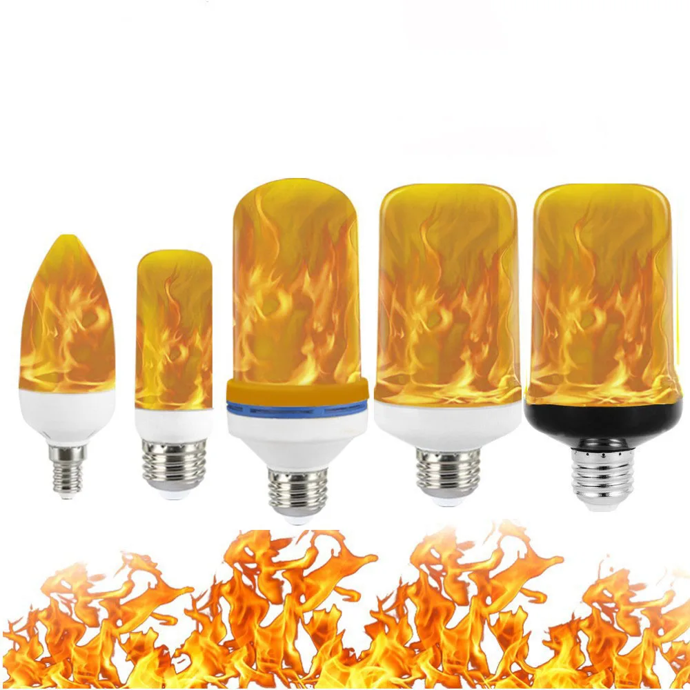 Декоративная лампа с эффектом пламени, 4 режима, Е27, сисветильник пламя, креативная лампа-кукуруза E14, ночсветильник с имитацией эффекта пламени