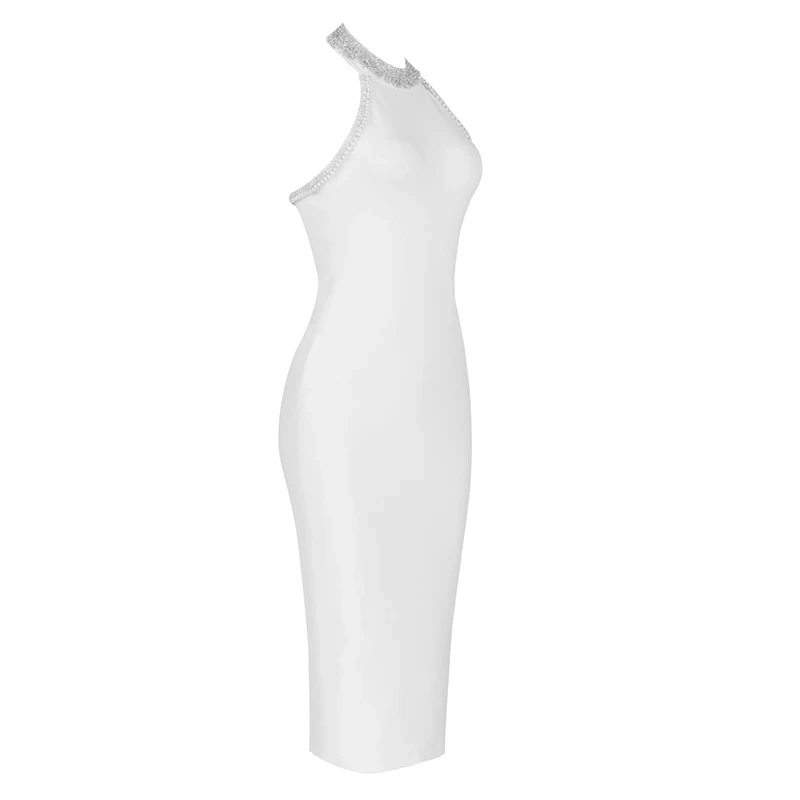 Женское вечернее платье, Белое Облегающее Платье с круглым вырезом и бусинами в стиле Звезд, для клуба, для лета, 2021