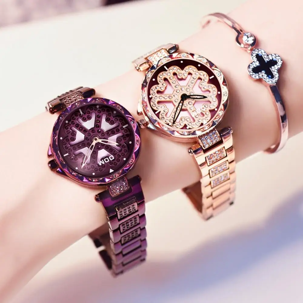 2021 Роскошные модные женские часы DOM, женские часы из нержавеющей стали, женские часы стразы, кварцевые наручные часы для девочек