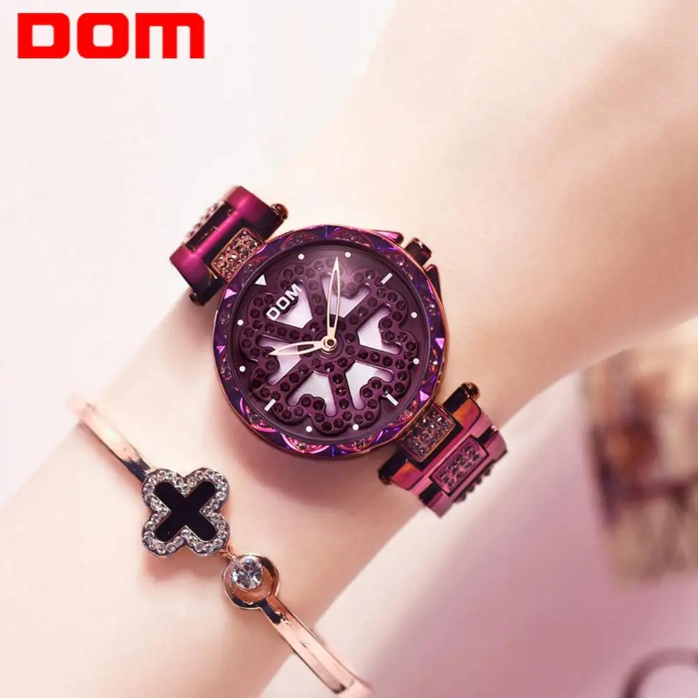 2021 женские роскошные модные женские часы DOM, женские часы из нержавеющей стали, женские Стразы, кварцевые наручные часы для девочек
