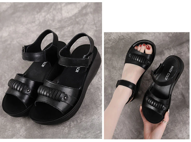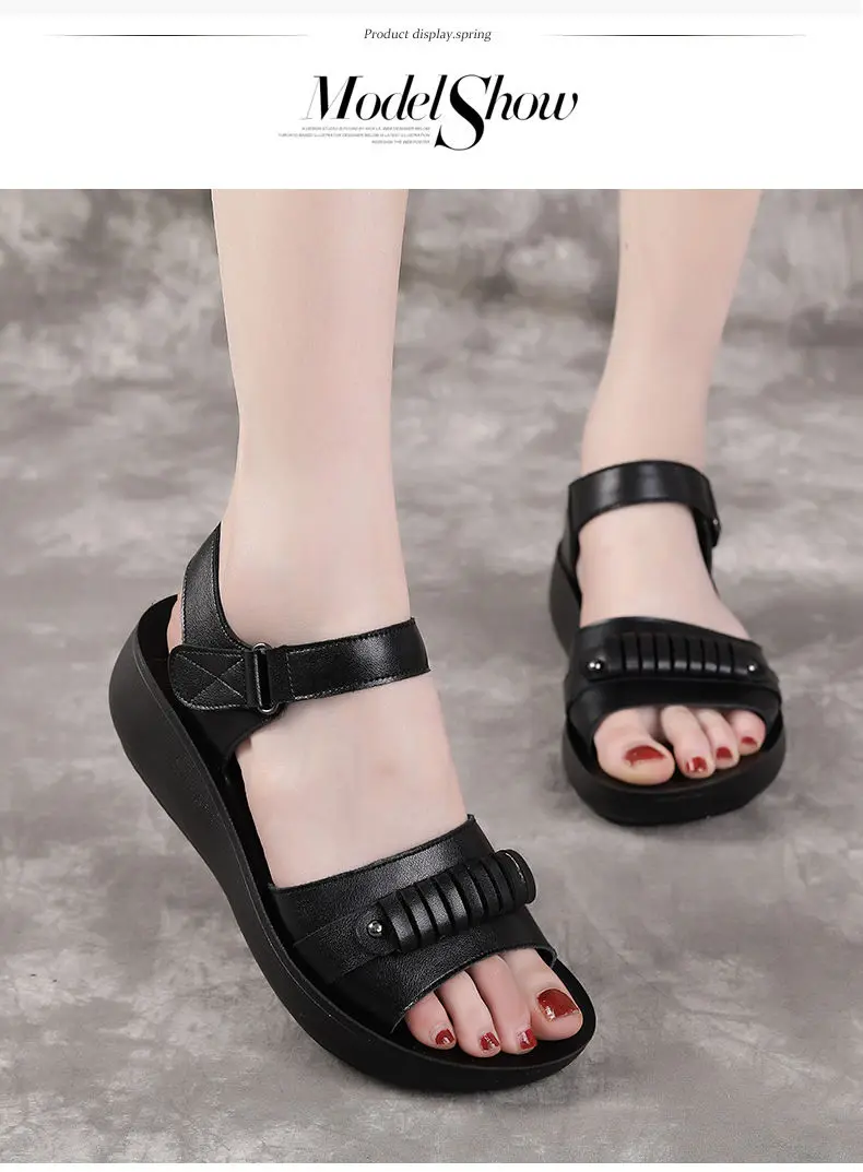 Женские босоножки из натуральной кожи OUKAHUI, летние дышащие санда...