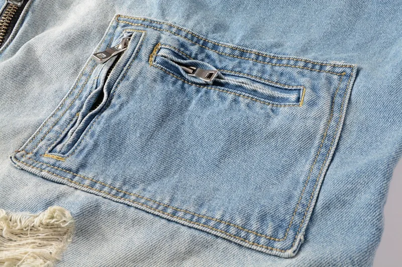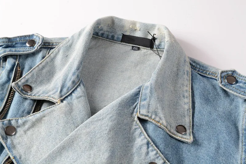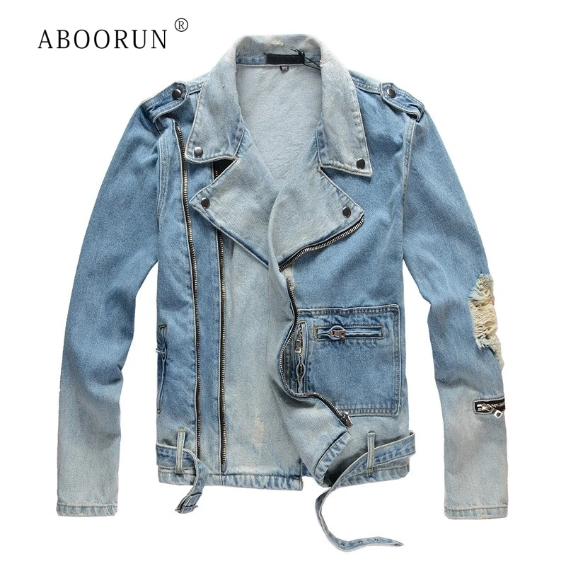 ABOORUN 2021 Мужская мода молния рваные джинсовые куртки Уличная одежда мотоциклетная Байкерская джинсовая куртка для мужчин