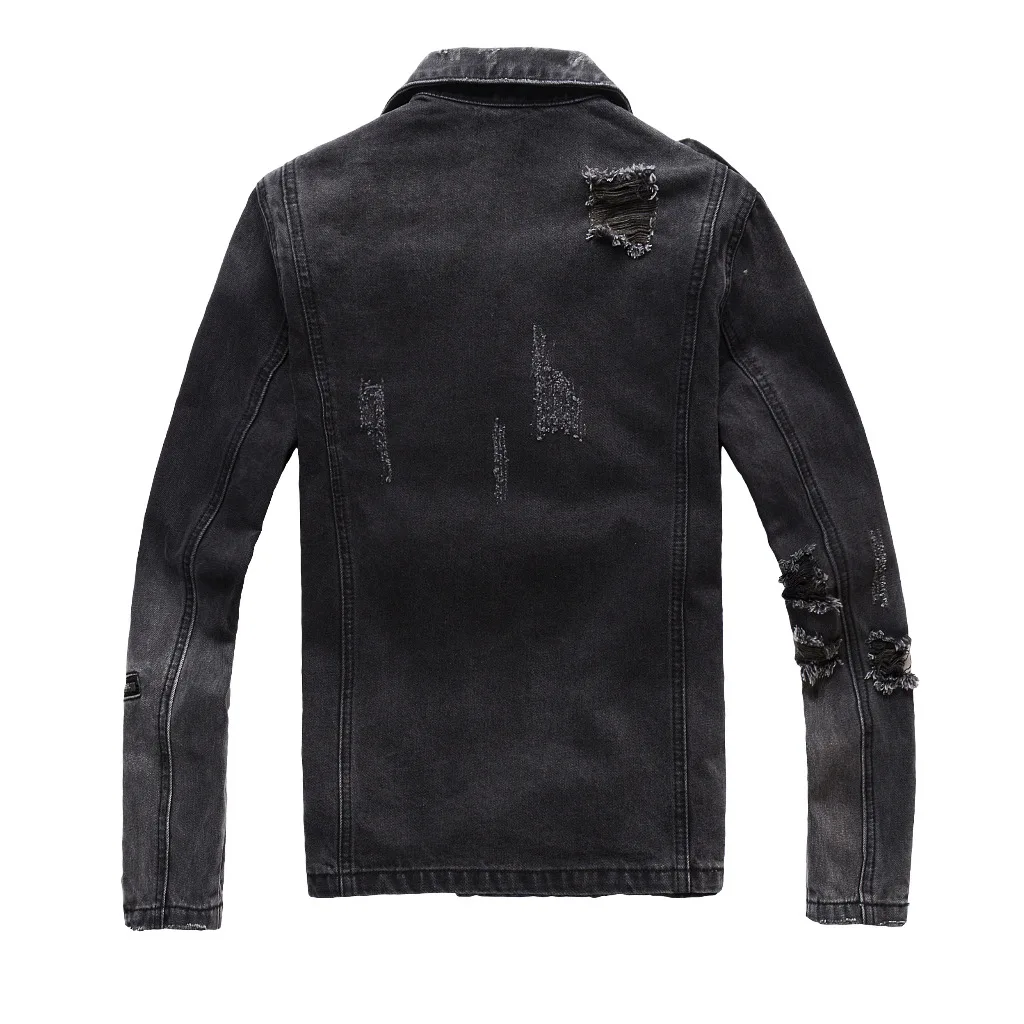 Брендовая осенняя синяя джинсовая куртка Chao с дырками, мужская ку...