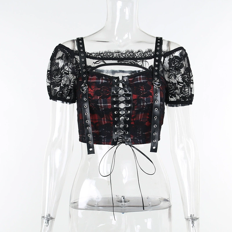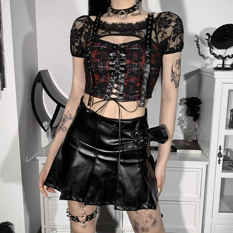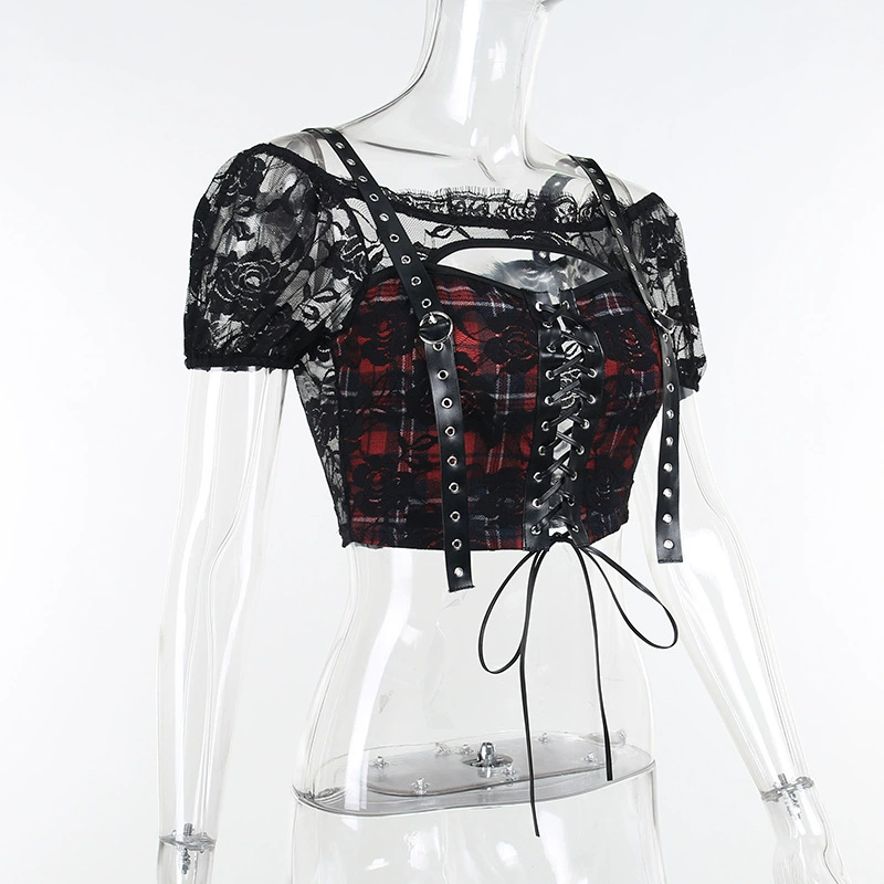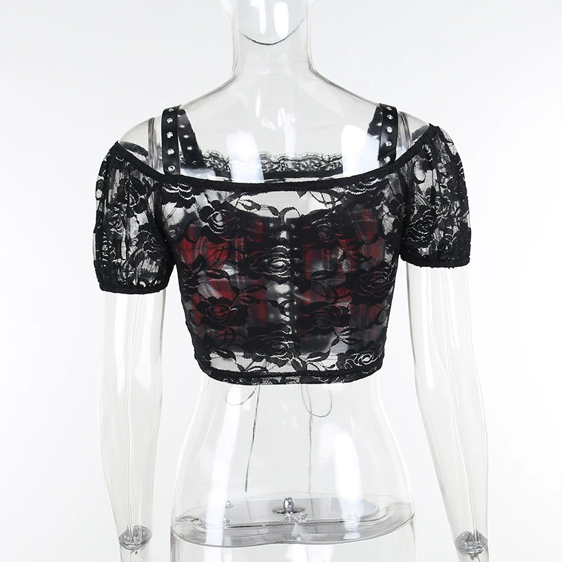 Женские сексуальные топы на бретельках с открытой спиной, готические топы, бархатные готические укороченные топы Y2K Mall, черные кружевные топы с отделкой эмо, альтернативные эстетические укороченные топы