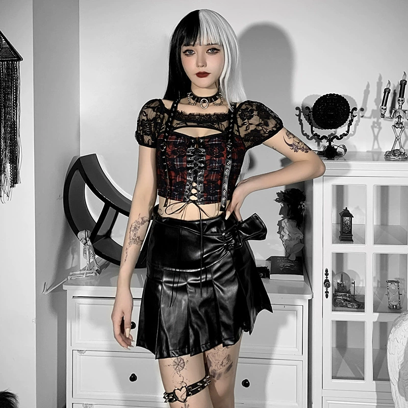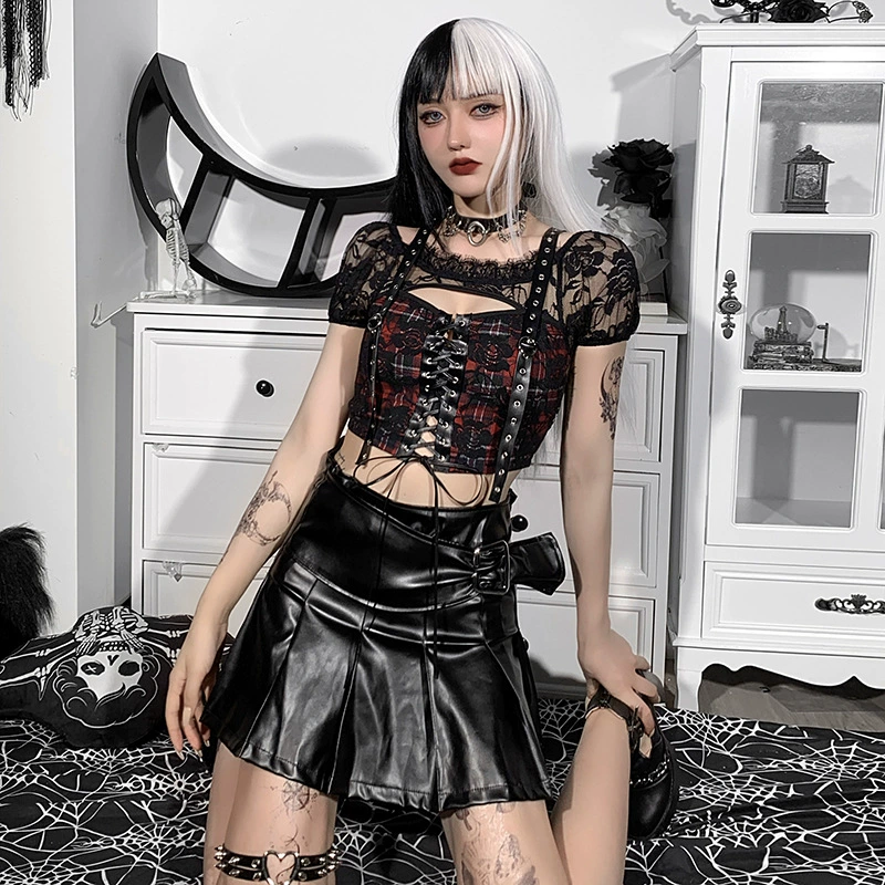 Бархатный топ гранж в стиле Mall, Готическая винтажная Женская одеж...