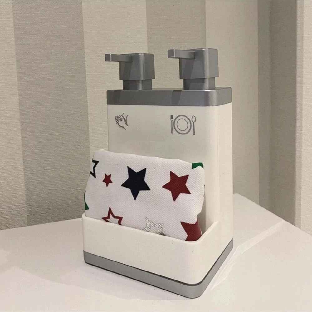 Это стильный дизайн, который поддерживает вашу жидкость для мытья посуды, губку для посуды и ткань, организованную вместе.
