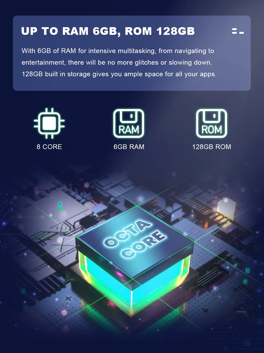 Автомобильный радиоприемник, мультимедийный плеер, 6 ГБ + 128 Гб, A...