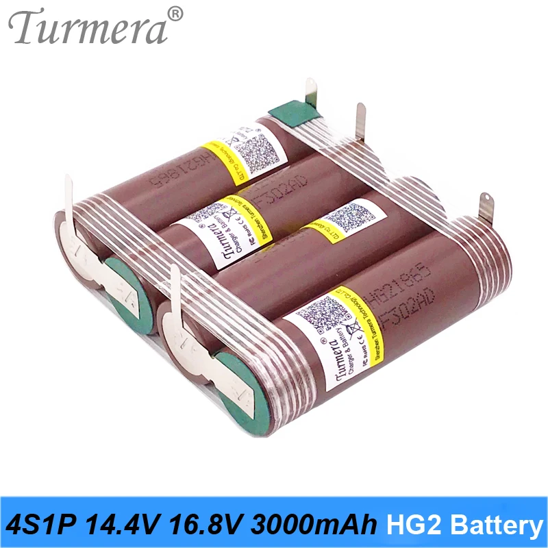 Аккумулятор Turmera 3S 4S, 5S, 6S, 18650, HG2, 3000 мА ч, 6000 мА ч, 30 А, литиевый аккумулятор для шуруповерта 10,8 В, 12 В, 16,8 в, 18 в, 21 в, 25 в