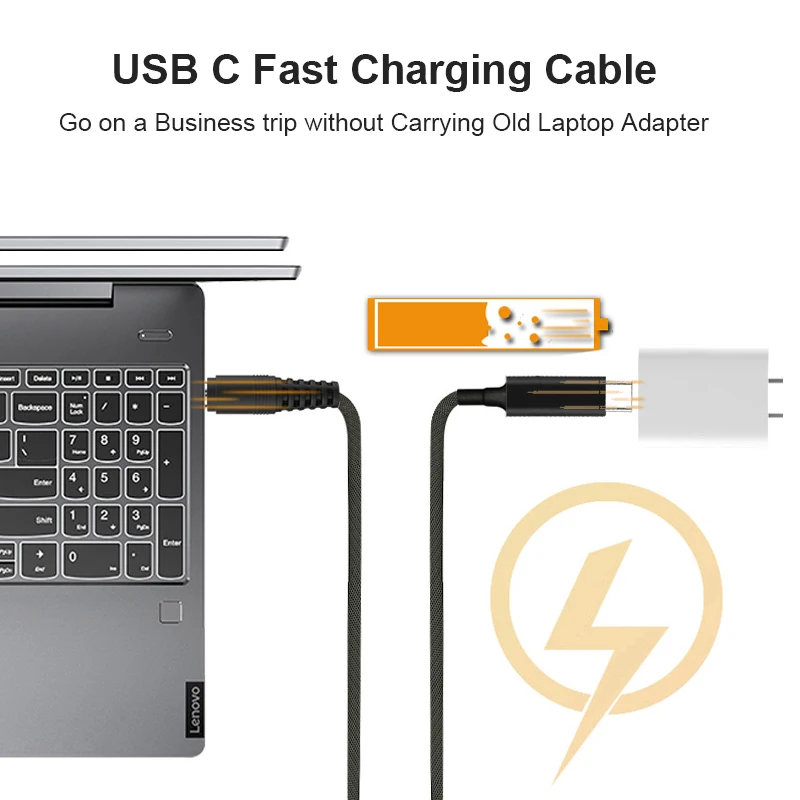 Tips: This is the adapter plug converter cable via USB Type C to laptops. You need one USB-C Adapter or power bank to support it. But the USB C adapter or power bank should has enough power (wattage) to charge the laptop.