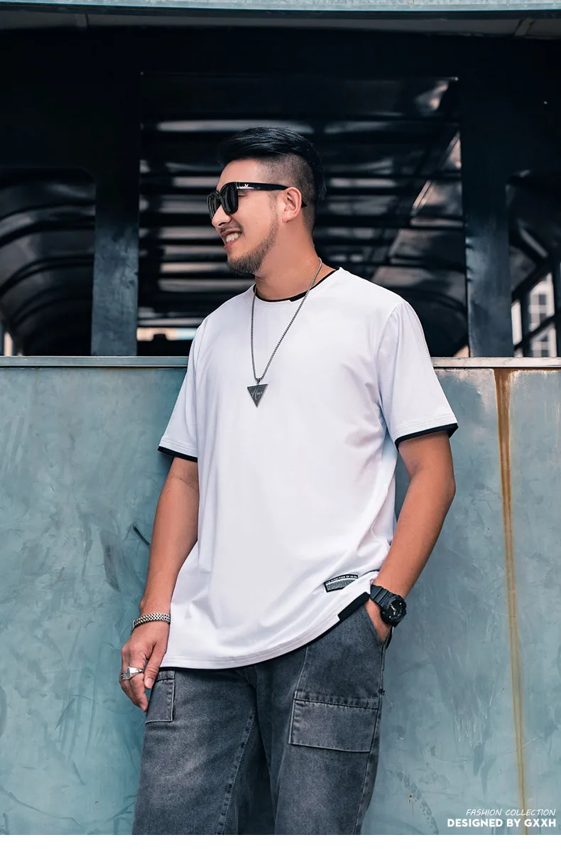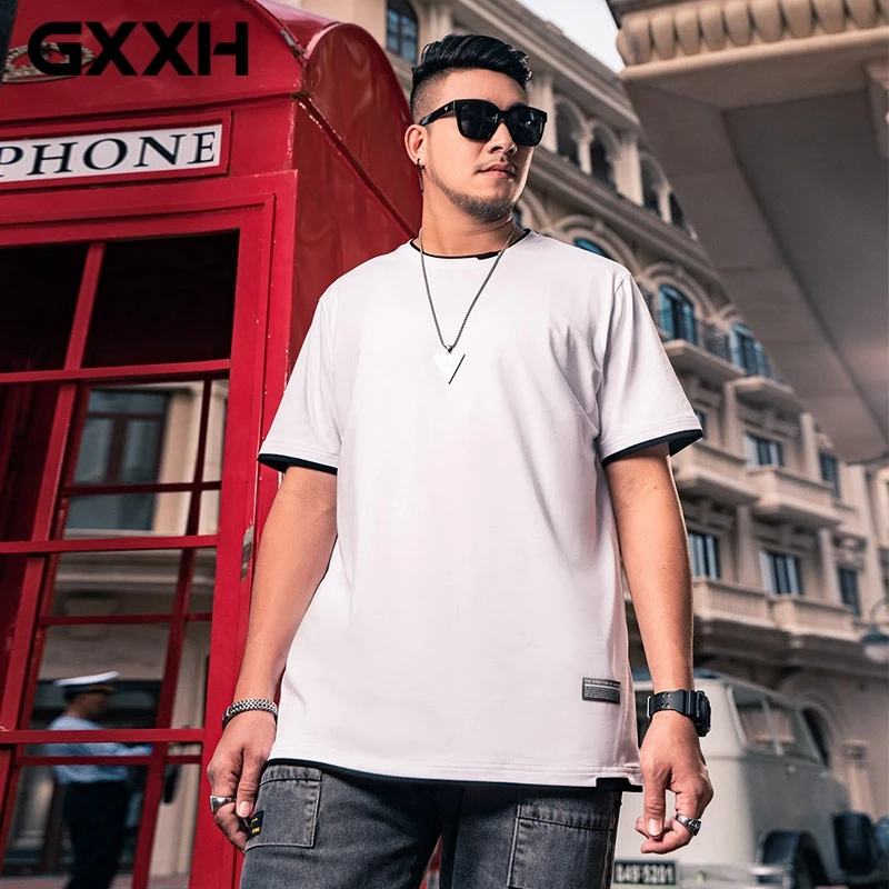 Футболка GXXH мужская оверсайз с коротким рукавом, хлопок, свободная рубашка, 6XL 7XL, летняя одежда, топ 80-140 кг