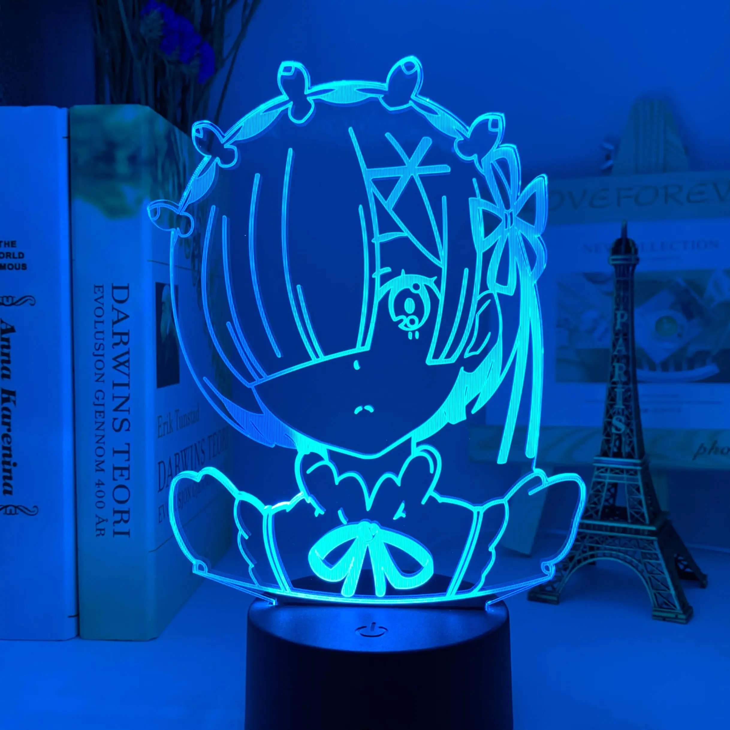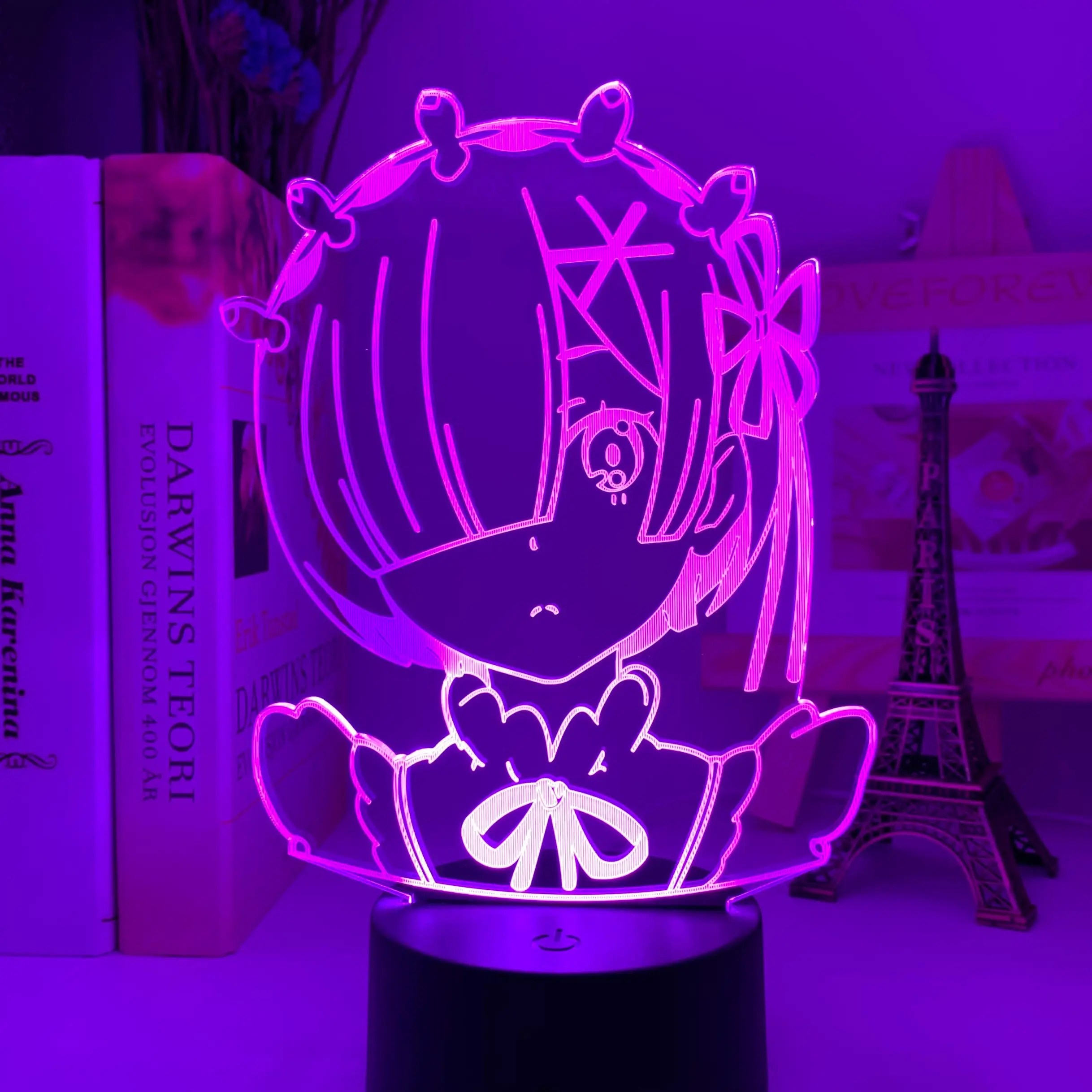 Ночник с аниме Rem Re Zero, светодиодный светильник с сенсорным датчиком, меняющий цвет, детский ночсветильник для спальни, Декор, настольная лампа 3D, подарок для манги