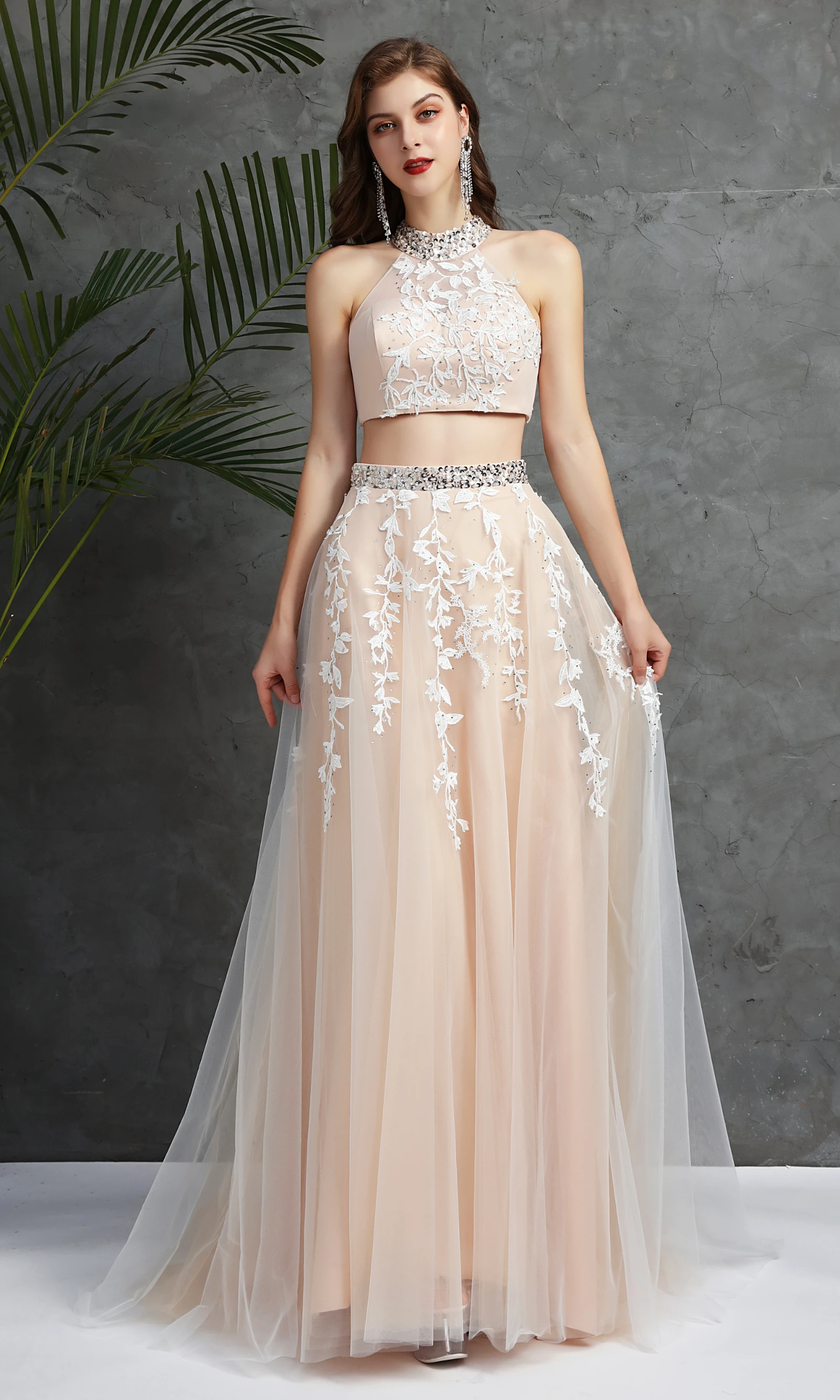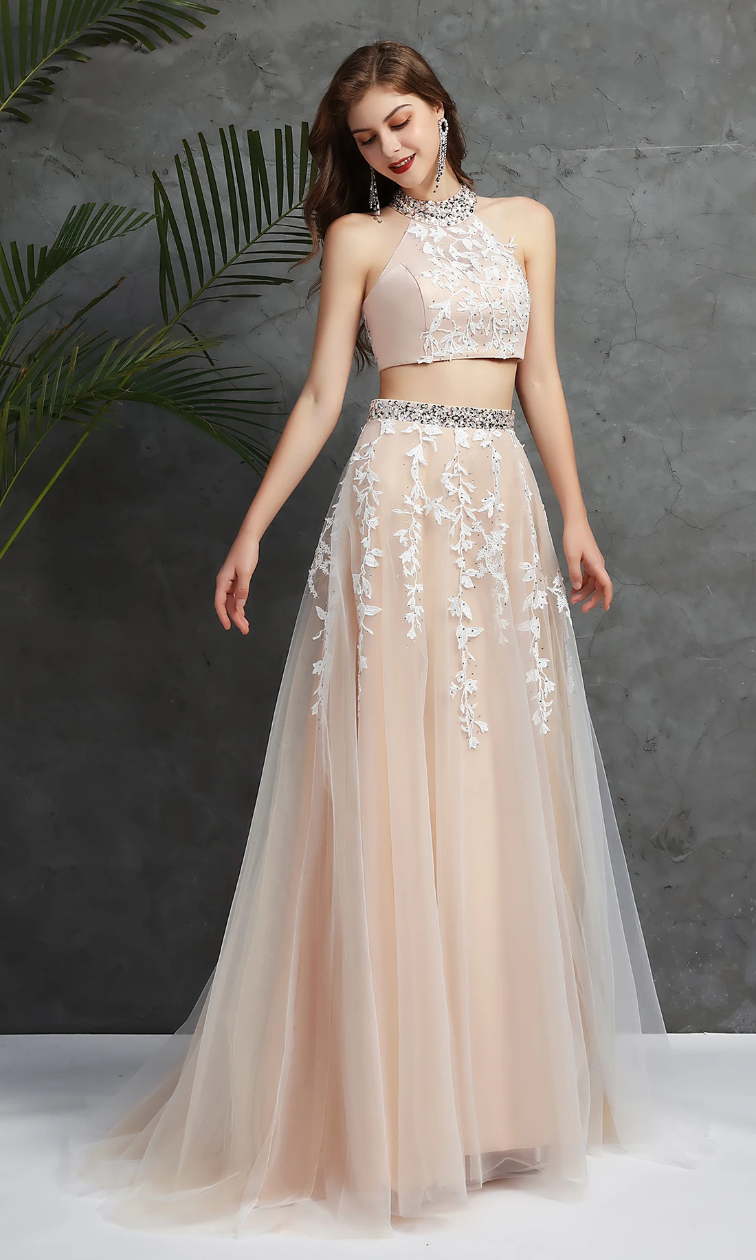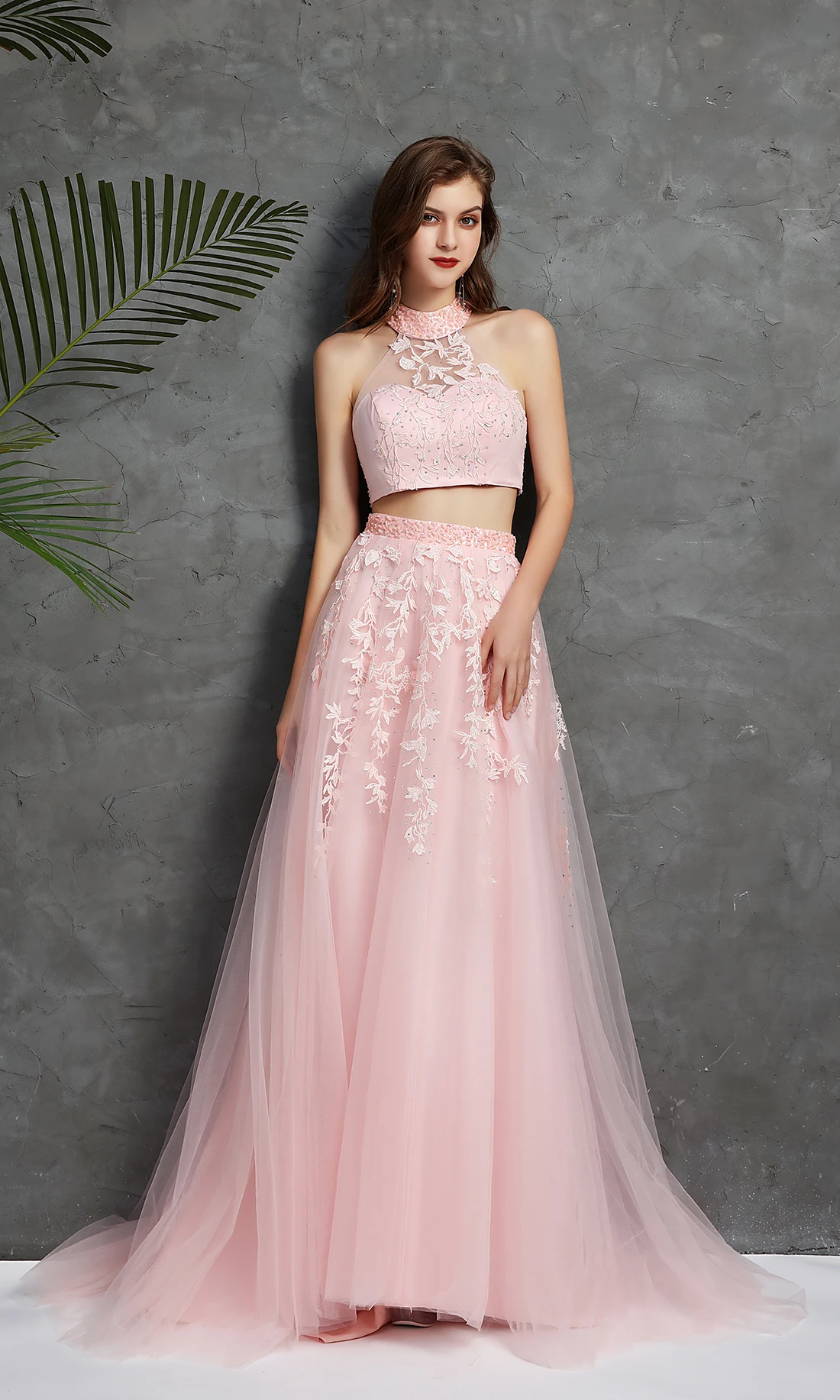 2021, розовые Бальные платья для выпускного бала из двух частей с кружевной аппликацией Vestidos Para, маскарадные вечерние платья с открытой спиной из тюля