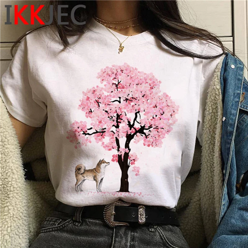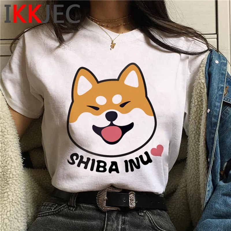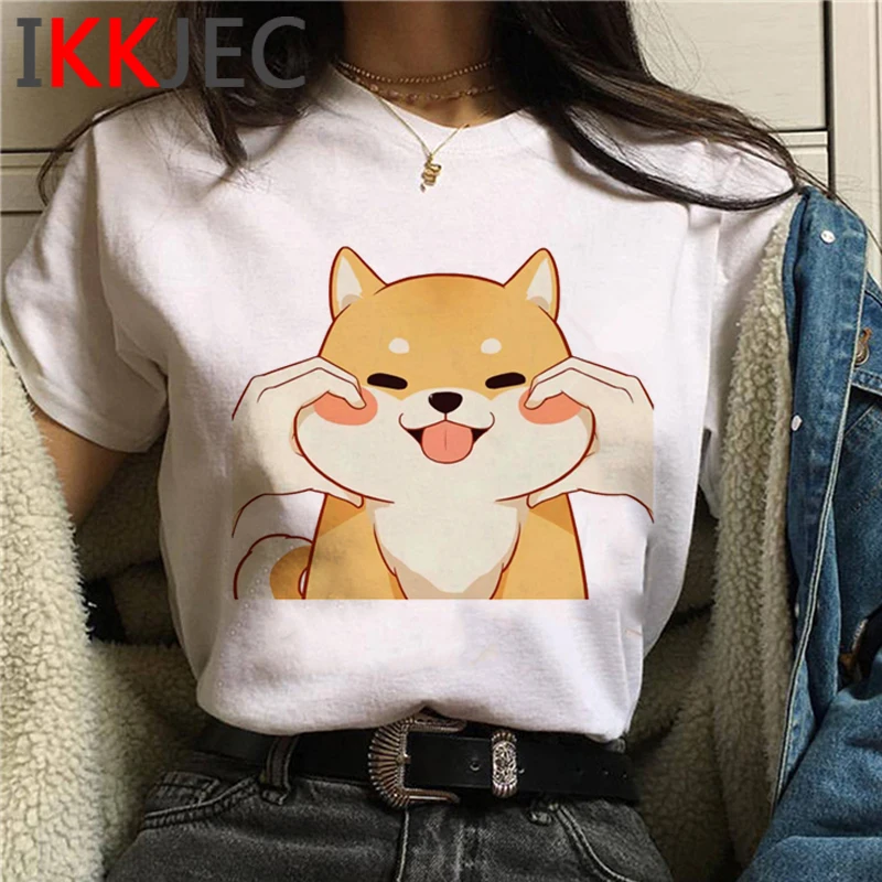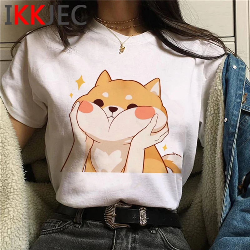 Футболка женская в стиле Харадзюку, милая Винтажная футболка с графическим принтом Сиба-ину, одежда для пар, милый летний топ в винтажном стиле