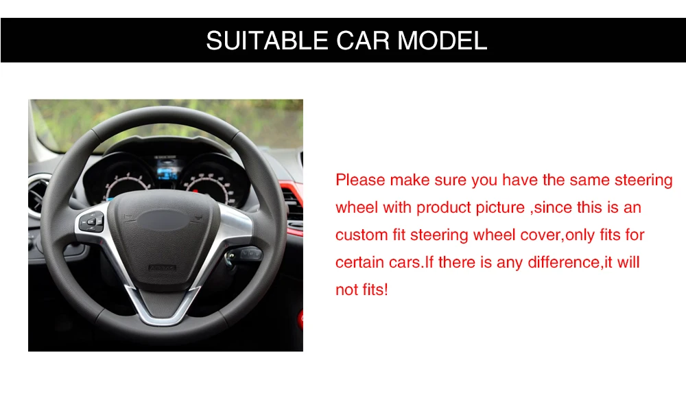 Черная замша красный маркер поделки ручной работы чехол рулевого колеса автомобиля для форд фиеста 2008-2013 Ecosport 2013-2016