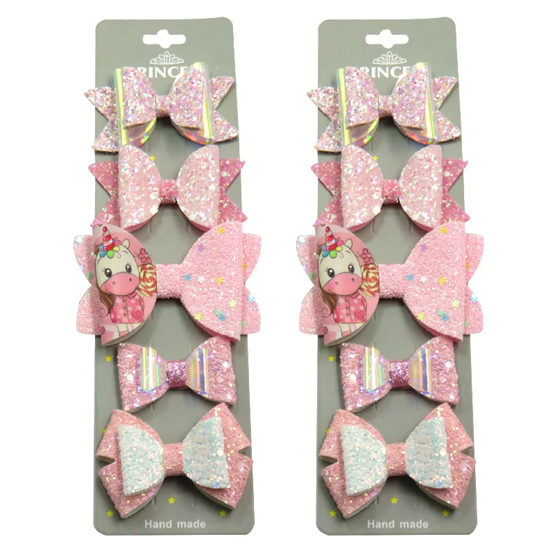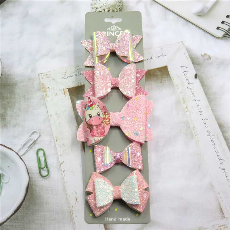 10 шт.компл., милое, розовое платье в сетку, с Единорог детская заколка для девочек кожа Луки Детские узел галстука творчества шпильки ручной работы женские аксессуары для волос для детей