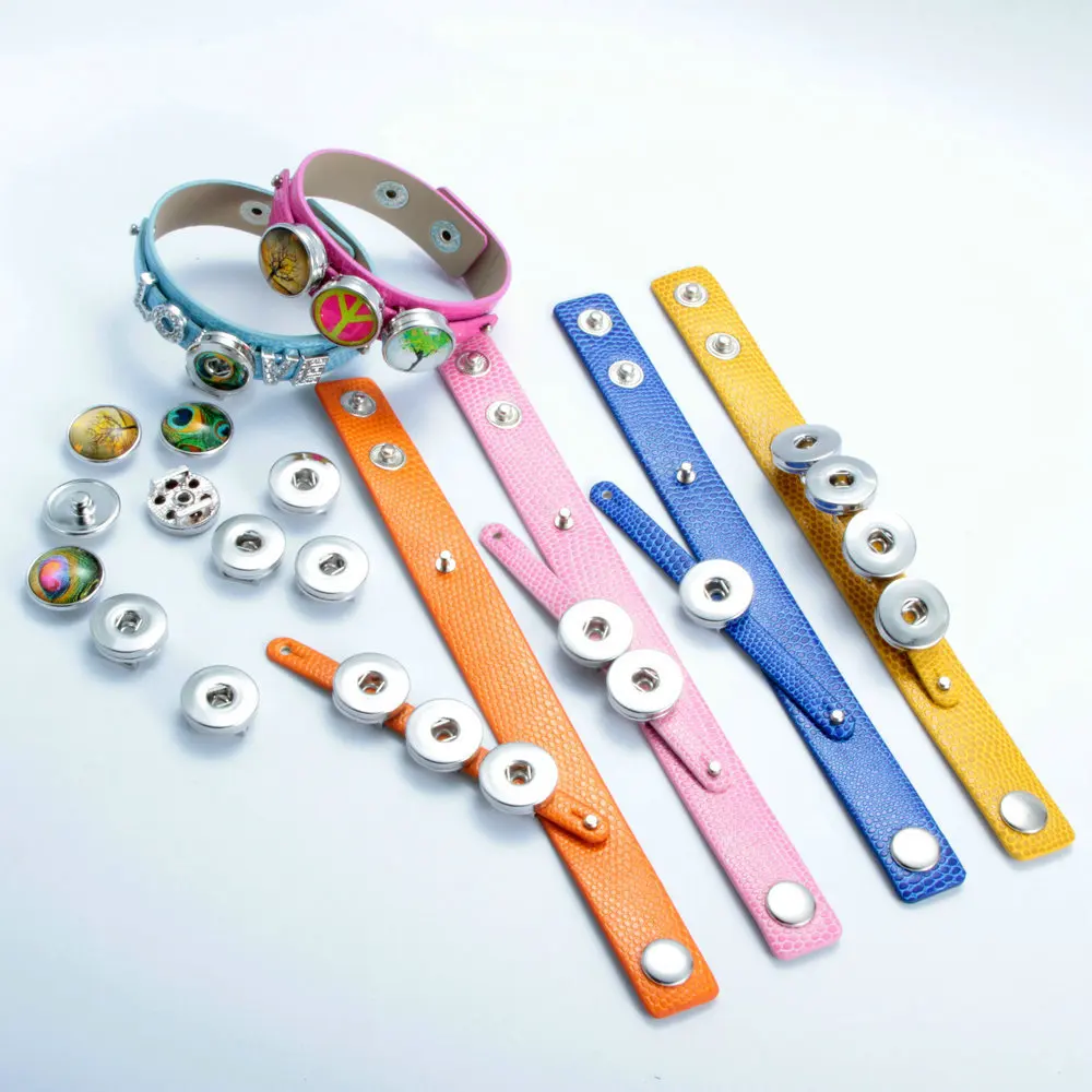 Лидер продаж кожаный, с кнопкой браслет часы Браслет Fit 18 мм кнопки ювелирные изделия простой кожаный браслет для мужчин и женщин ювелирные изделия