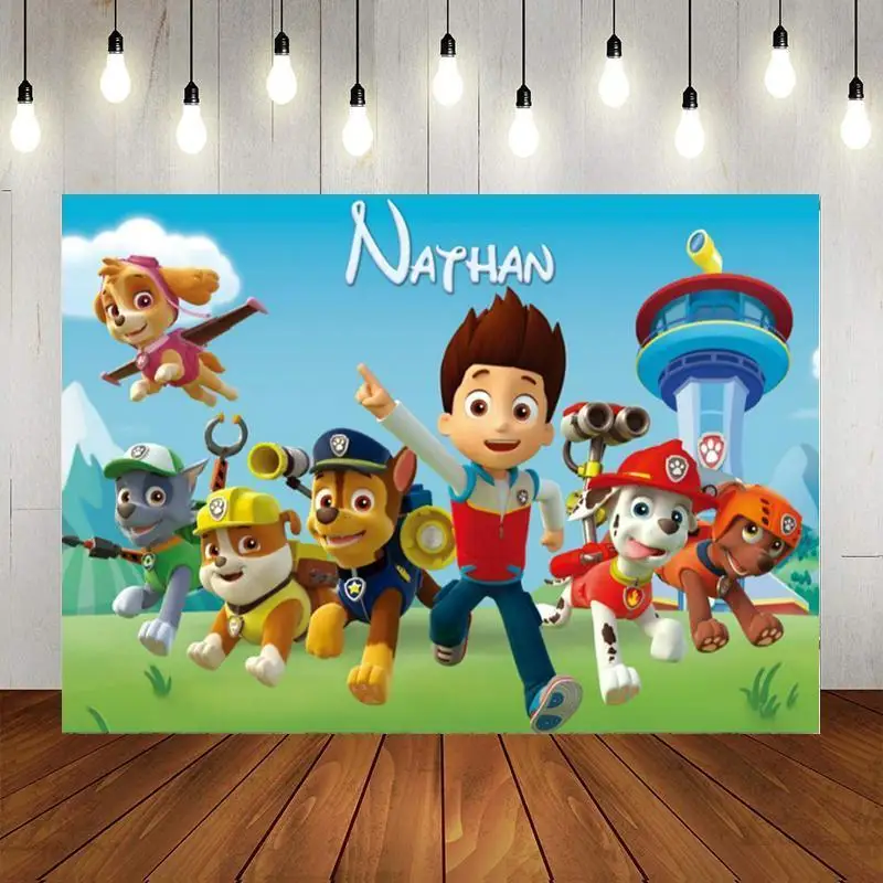 Бегущие собаки голубое небо мультфильм Фон фотографии семейный патруль Дети День Рождения фотография фон для декора стола