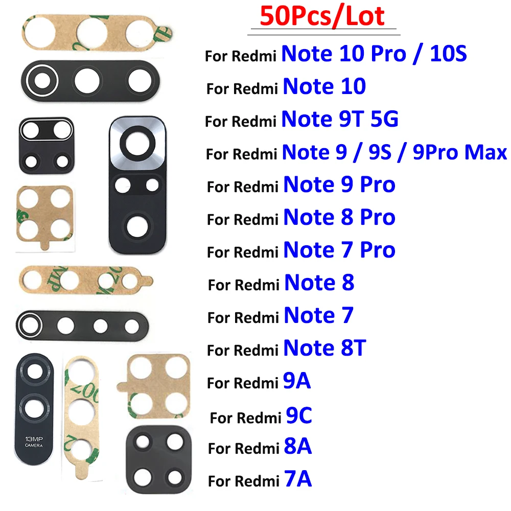 50 шт./лот, 100% оригинальная задняя камера со стеклянным объективом для Xiaomi Redmi 9C 7A 9A 8A Note 7 8 9 10 Pro Max 9S 8T 10S 9T 5G1 задняя камера стеклянная линза с клейкой наклейкой