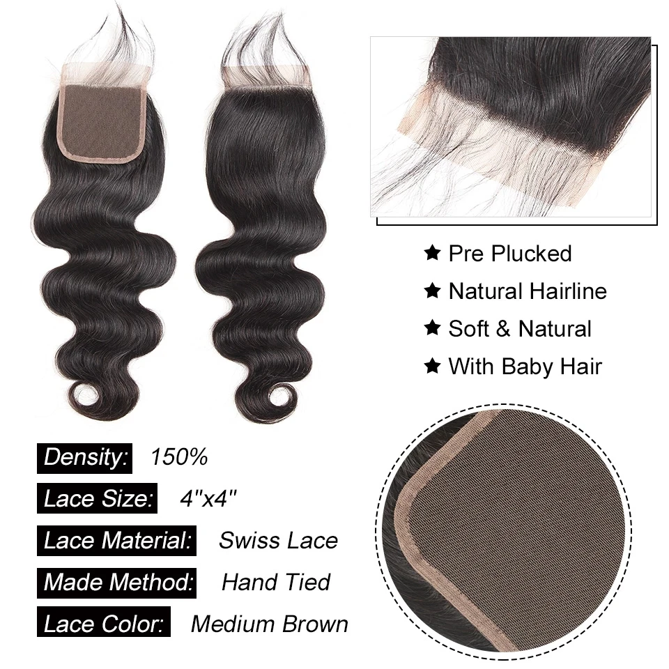 1. Материал волос: 100 необработанных человеческих волос среднего коричневого швейцарского кружева закрытие перуанского