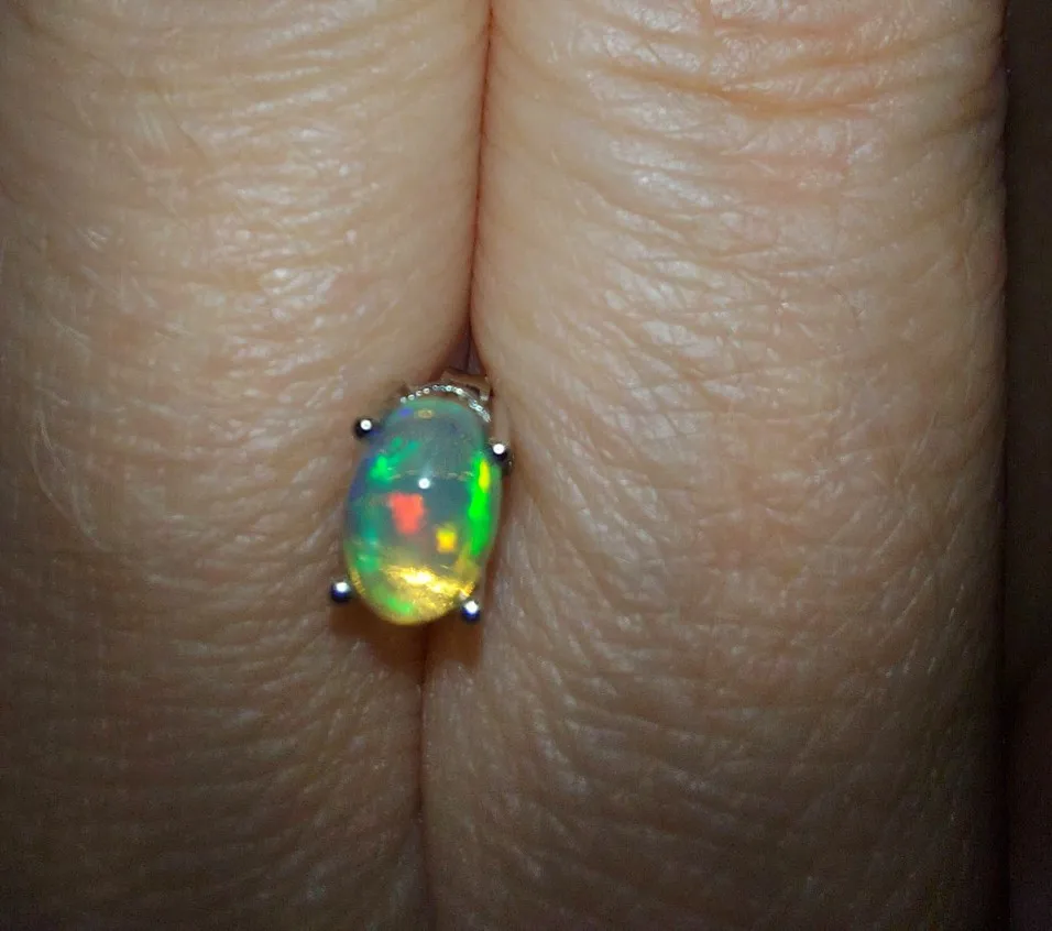 Абсолютно потрясающе! Настоящий опал, Великолепный! Выглядит как Настоящее серебро, но я не могу проверить. Он не является магнитным. Хорошо упаковано и получено полировочной тканью.