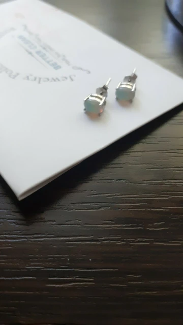 Посылка была доставлена быстро в почтовом пакете и подарочной коробочке. Трек номер отслеживался на всем пути. Серьги выполнены качественно. Изготовлены из серебра,есть 925 проба. Камень - опал. Серьги - гвоздики, держатся крепко. В комплекте идут заглушки из серебра и из силикона. В подарок продавец положил специальную салфетку для ухода за украшением. Смотрятся серьги очень нежно и мило. Мне понравились, к покупке рекомендую!