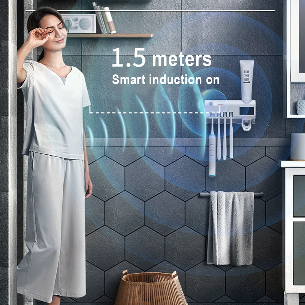 Умный Диспенсер Для держатель для зубной пасты и для зубной щетки для дезинфекции, водонепроницаемый настенный ящик для хранения для ванной комнаты, аксессуары для ванной комнаты