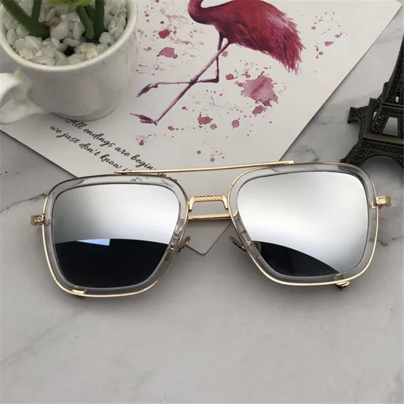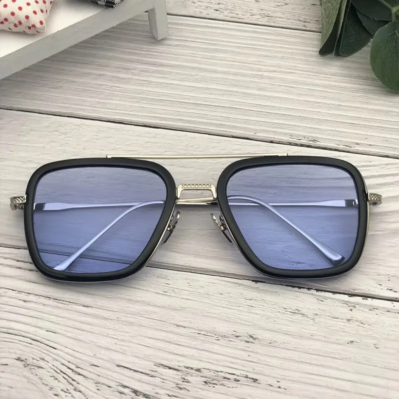 Шторы Ретро Винтаж дизайнерская солнцезащитные очки-авиаторы Железный человек 3 Тони Старк солнцезащитные очки Для мужчин Готический Rossi покрытие UV400