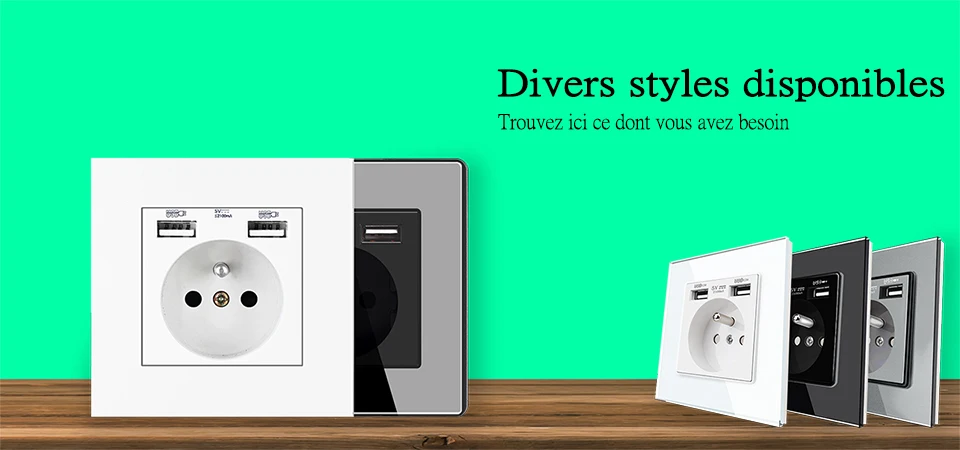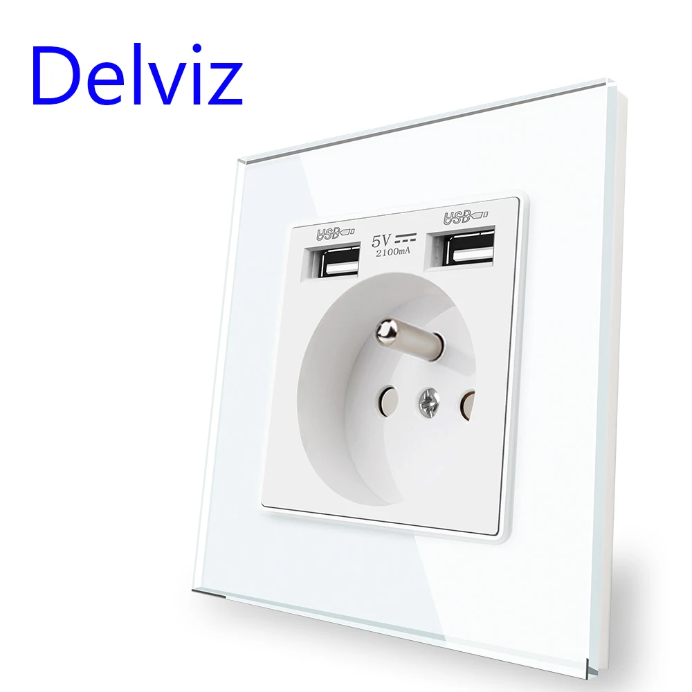 Настенная USB-розетка Delviz, 5 в 2100 мА, двойной безопасный usb-интерфейс для зарядки, закаленное стекло, 16 А, французская стандартная розетка