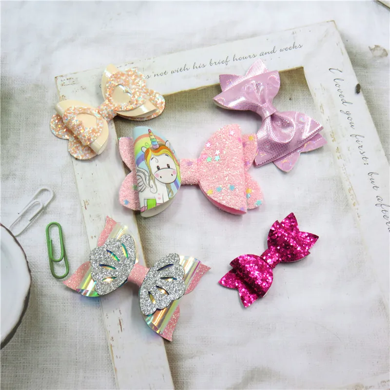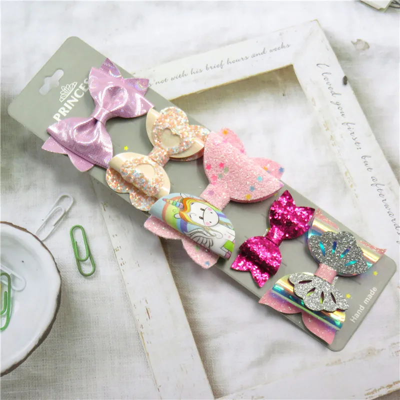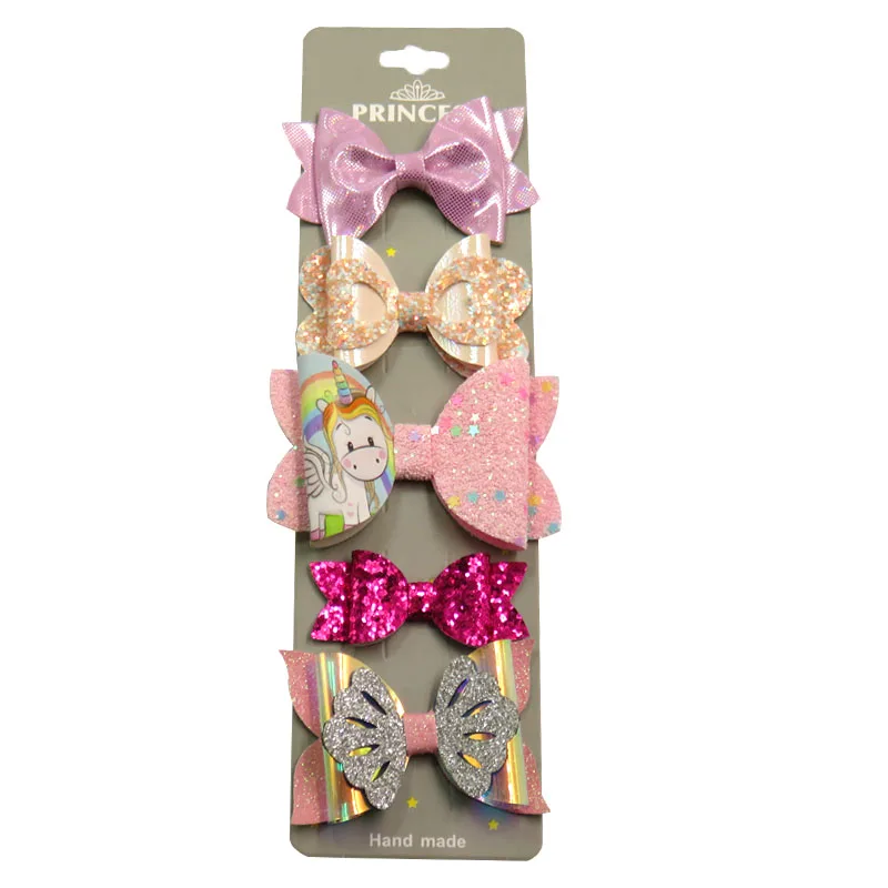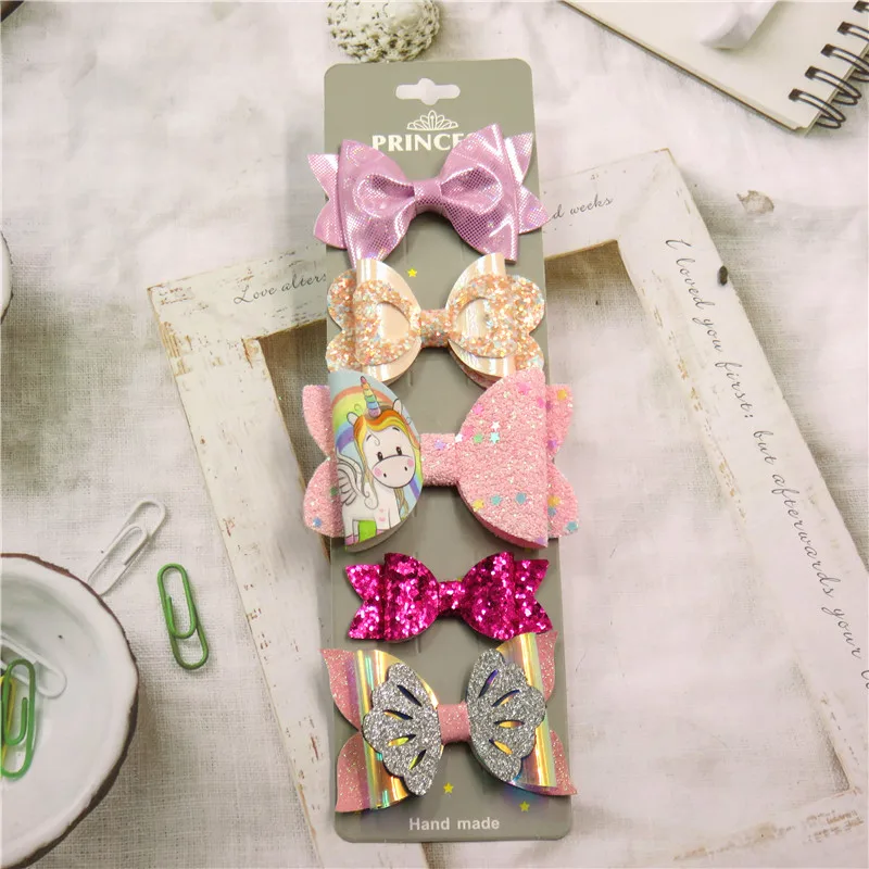 5 шт.компл., милое, розовое платье в сетку, с Единорог для маленьких девочек заколки кожа Луки Детские узел галстука творчества шпильки ручной работы женские аксессуары для волос для детей