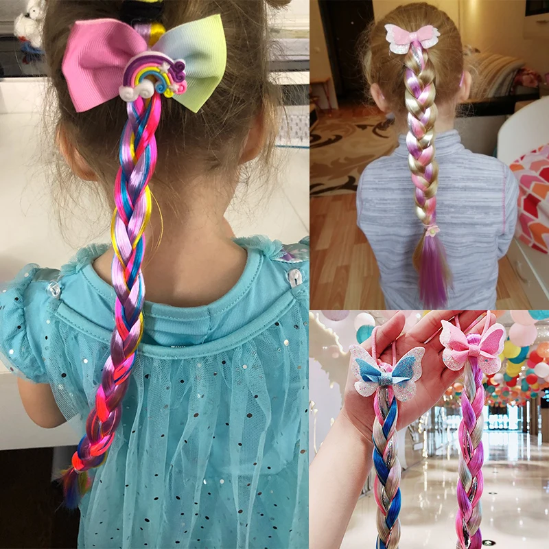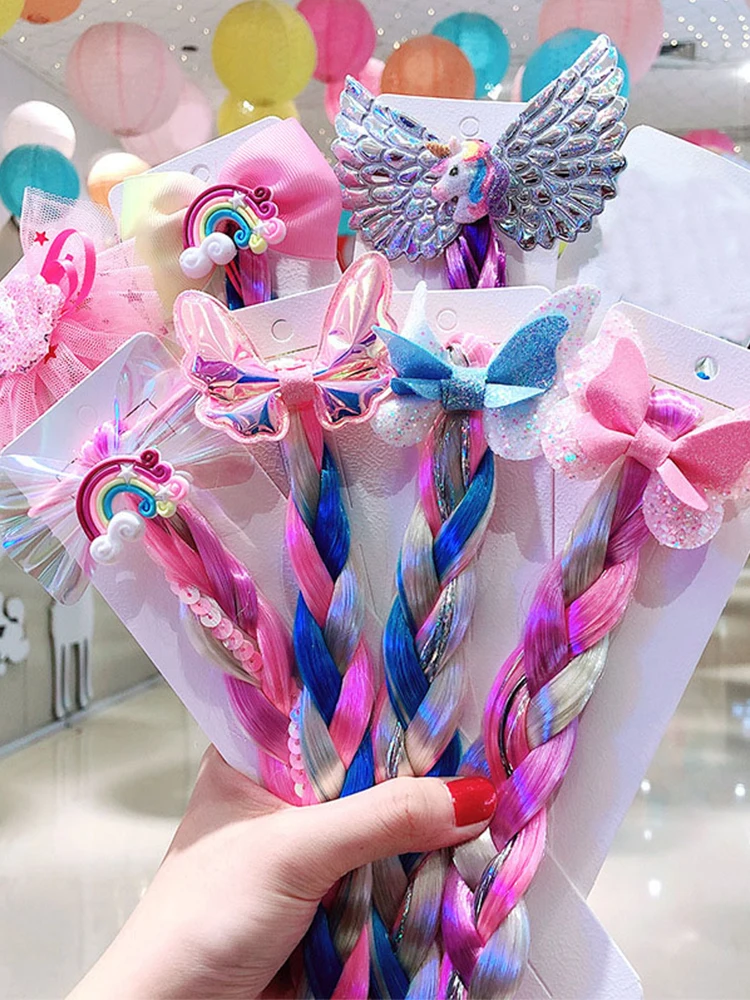 Парики для девочек, косички с единорогом, повязка для волос, головн...