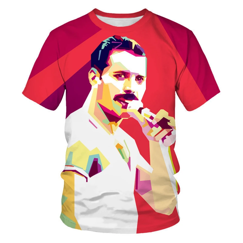 Футболка Мужскаяженская с 3D-принтом, уличная одежда в стиле рок-группы, певец, Фредди Меркурий, модный топ с круглым вырезом в стиле Харадзюку, на лето