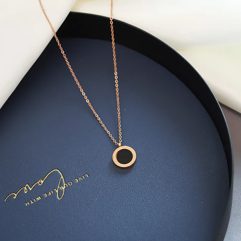 Женское Ожерелье из титановой стали, простое двухстороннее черно-бе...