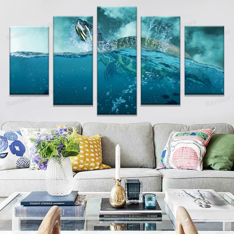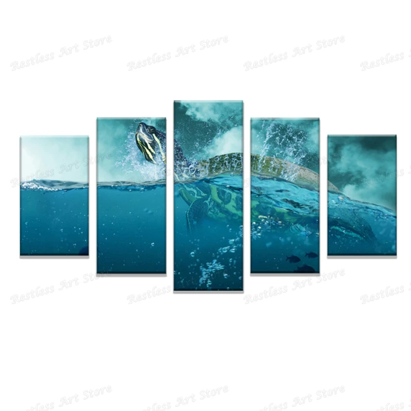 Постеры для украшения дома, современное настенное искусство, 5 шт., картины с животными, морскими черепашками, рамка для гостиной, HD печатная пейзажная живопись