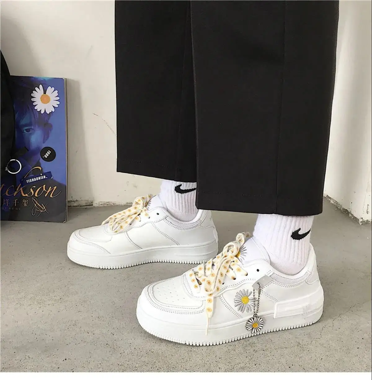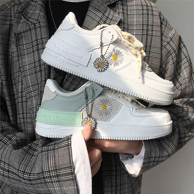 Кроссовки женские на платформе Ulzzang, Вулканизированная подошва, цветочный принт, повседневная обувь для тренировок, теннисная обувь, весна-лето