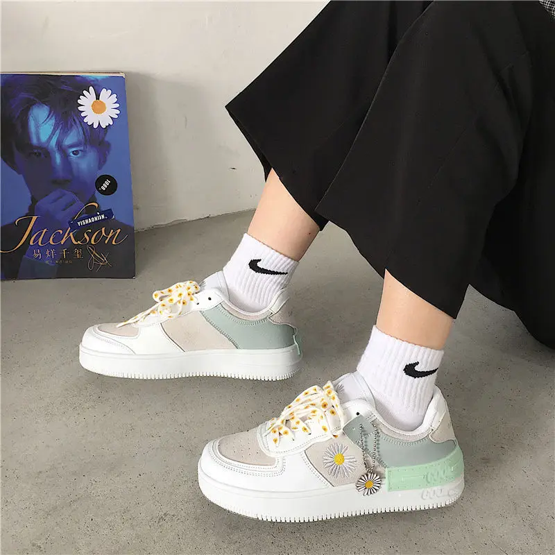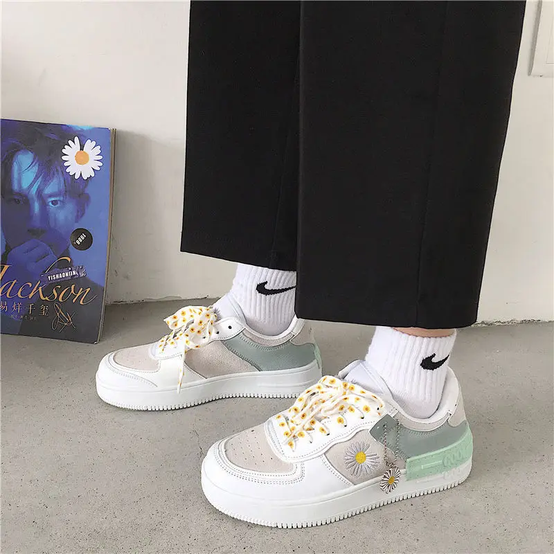 Женские кроссовки на платформе Ulzzang, весенне-Летние повседневные кроссовки на плоской вулканизированной подошве с цветочным принтом