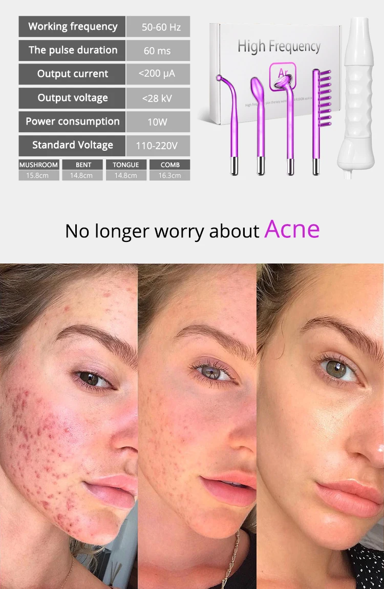 Принцип работы:1: высокочастотная электротерапия является важным косметическим инструментом. Она проходит через стеклянную электродную трубку дляПроизводят высокочастотный ток и наносят на лицо, таким образом достигает результата лечения.2: Это высокочастотное устройство может тихо обратить вспять процесс старения и вернуть молодость коже, устранить прыщи и прыщи, помочь ране быстро заживить, сдерживать поры, подтянуть кожу, помогают росту волос и вылечить алопецию и т. Д.Функциональность:1) Функция обезболивания.2) Мы производим озоны для стерилизации, не можем испортить и испортить жизнь.3) verbeteren secretie, de ph-waaye, zorgt dat de magmager нейтрализованный.4) versnellen de bloedsomloop en stofwisseling verbeteren.5) высокоэффективный антивозрастной фургон с защитой от прогона