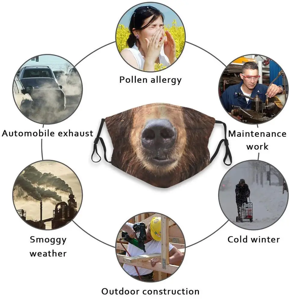 Переносная маска для лица, моющаяся маска для лица с 3d рисунком, Пылезащитная маска для лица, маска для лица с изображением медведя, морского медведя, симпатичного рота, животного, забавного коричневого медведя