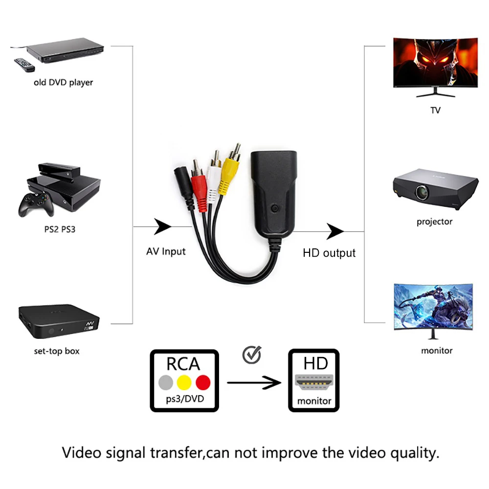 Преобразователь AV-HDMI 1080P для ТВ-приставки, компьютера на ТВ-кабель, трехцветный RCA штекер