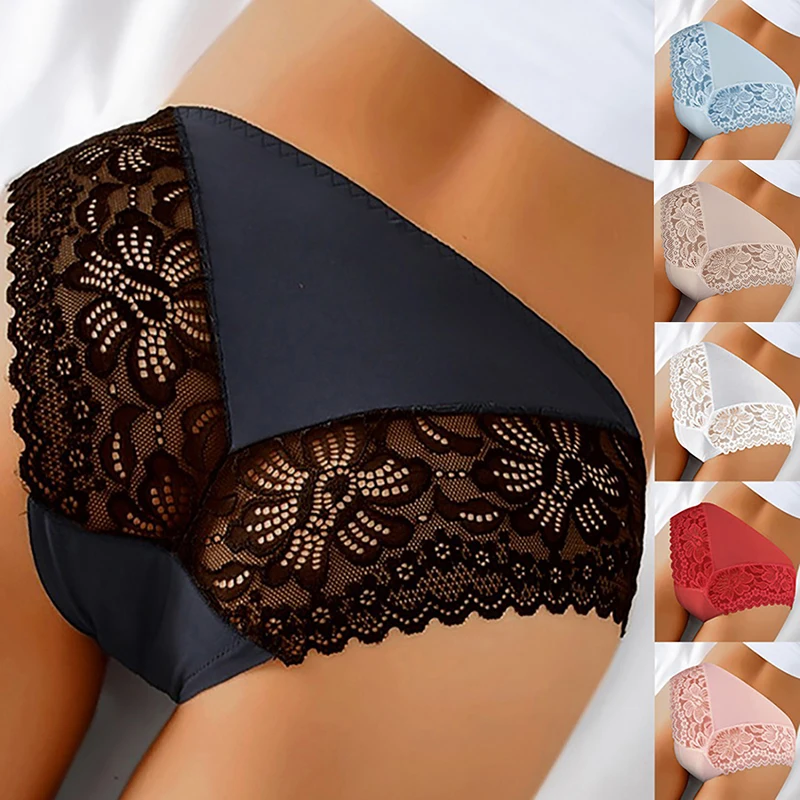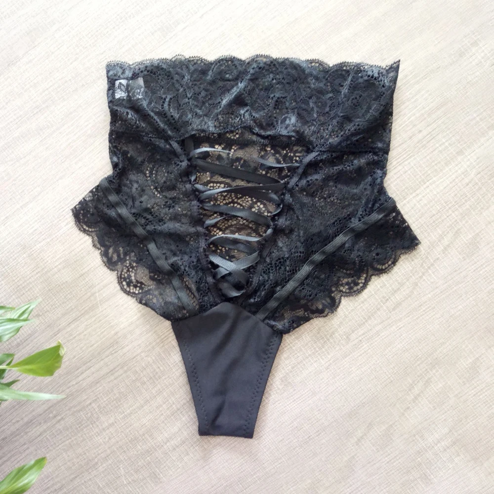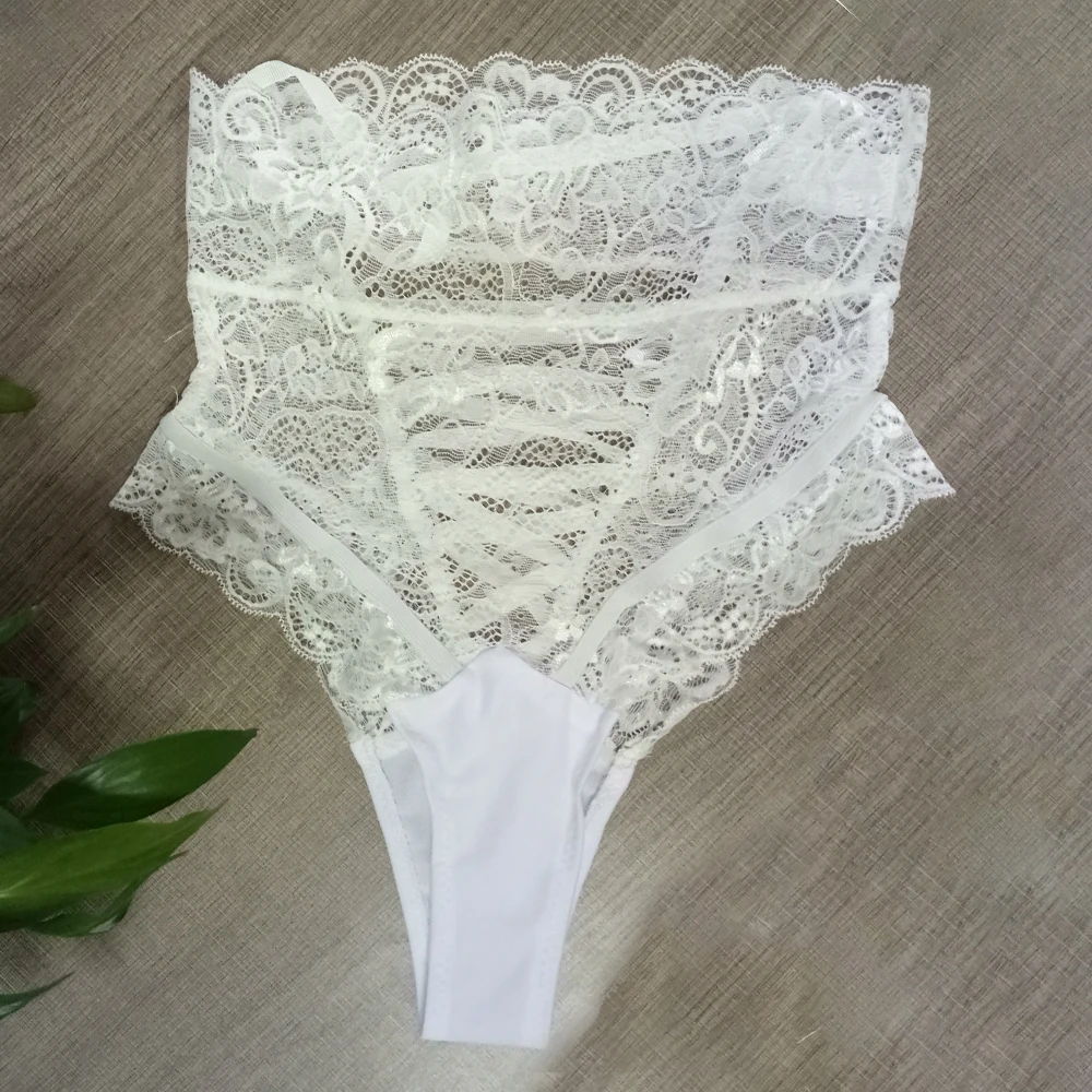Женские кружевные трусики-стринги с высокой талией, ажурное нижнее белье