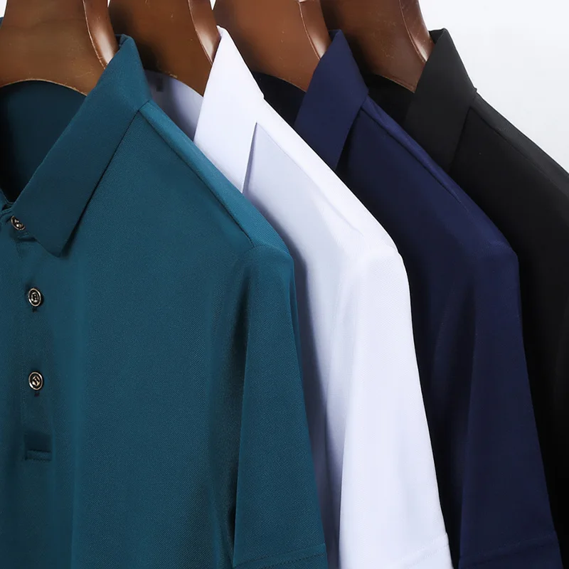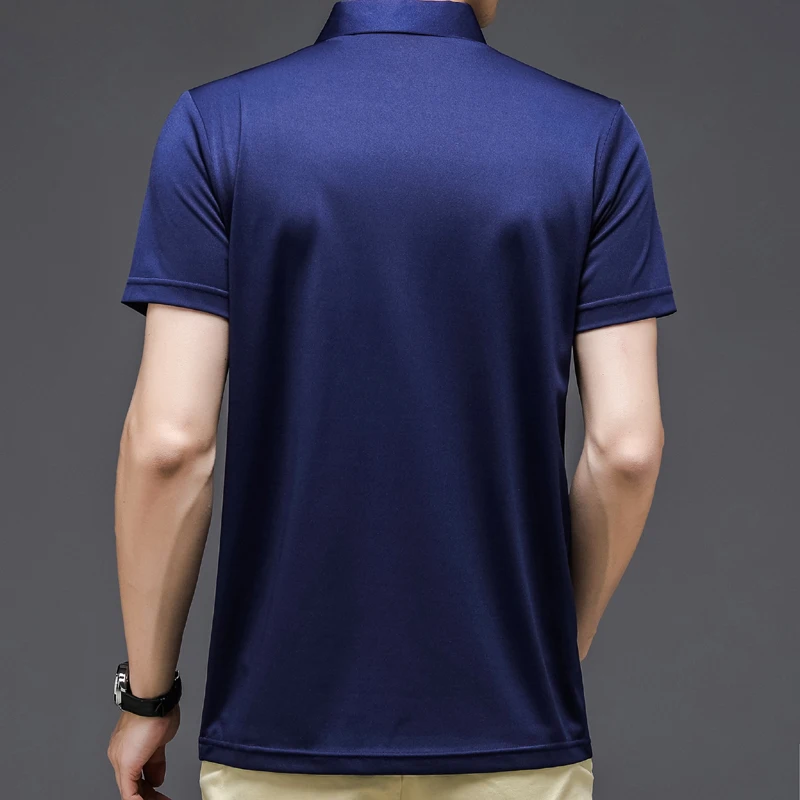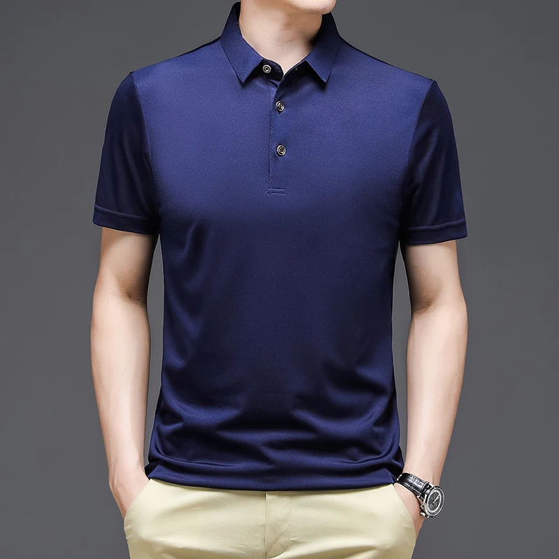 Рубашка-поло мужская однотонная, Классическая шелковая хлопковая ру...