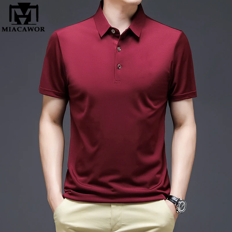 Рубашка-поло мужская однотонная, шелковая хлопковая рубашка с корот...