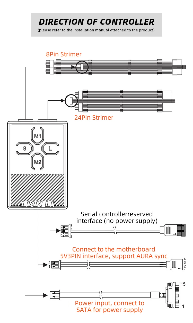 LIANLI STRIMER PLUS адресуемый 24-контактный материнский кабель 8PI...