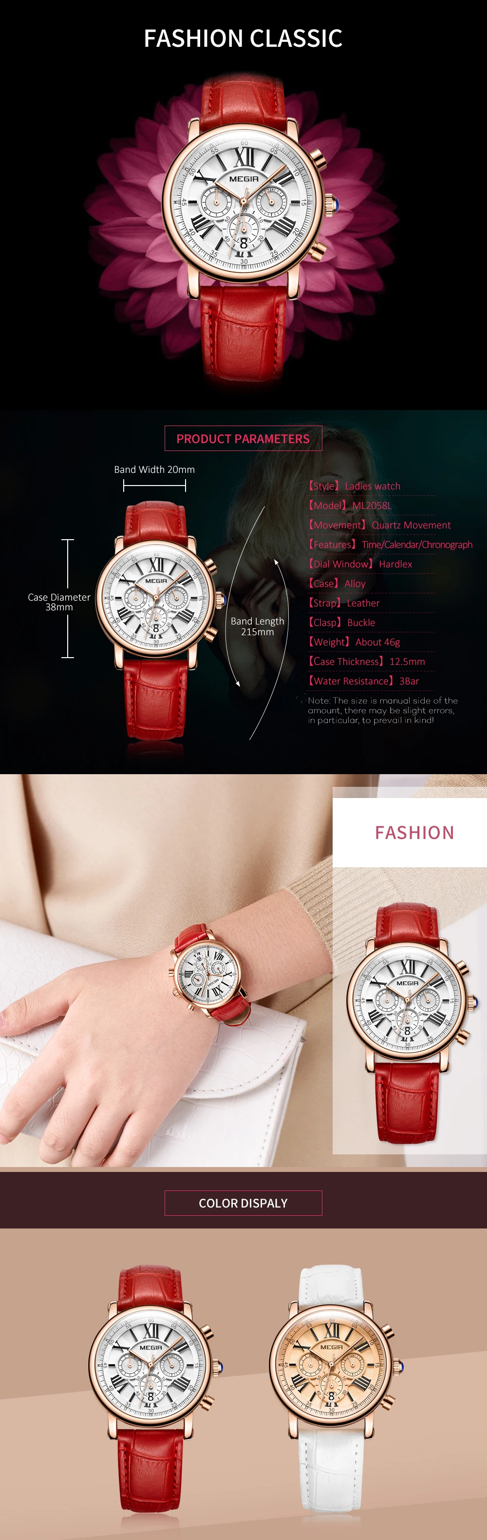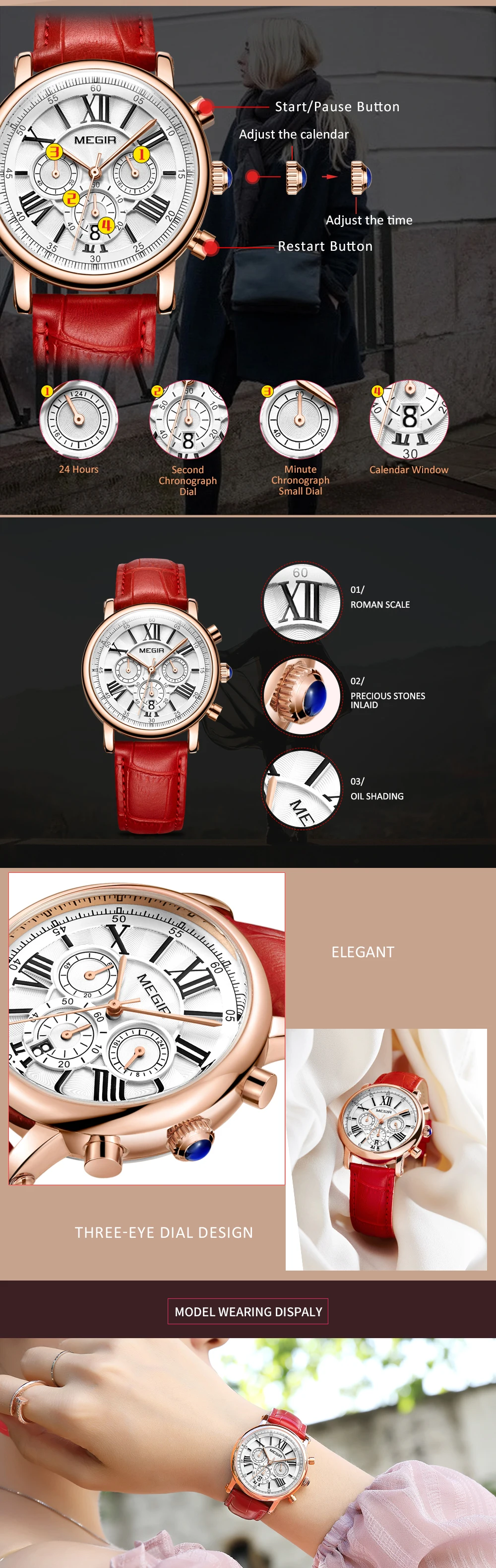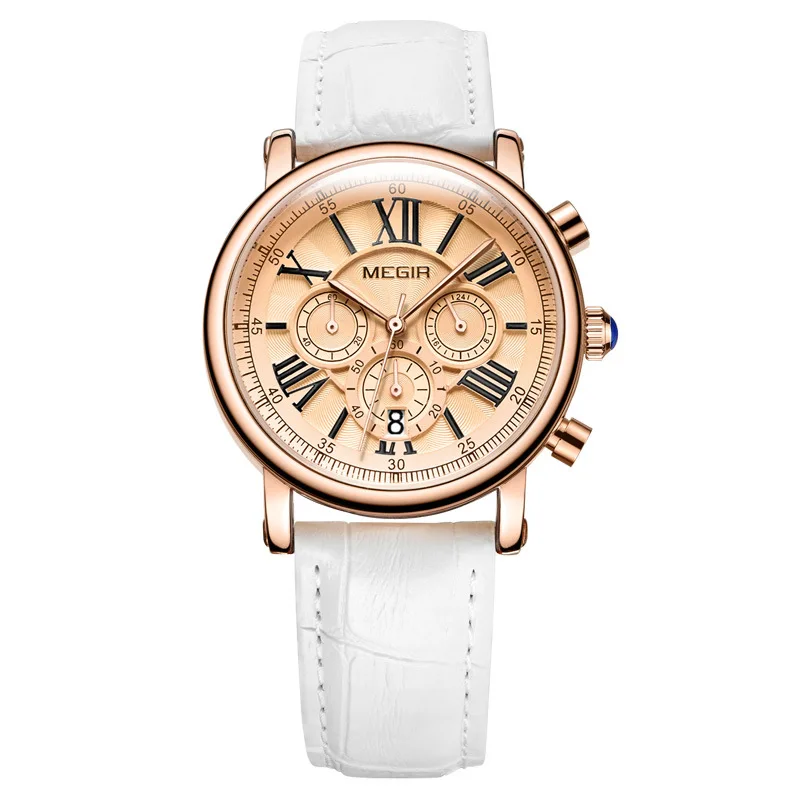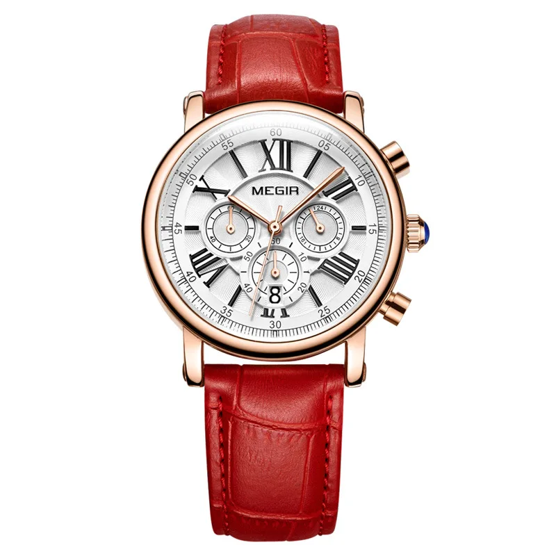 Часы MEGIR женские кварцевые в ретро стиле, многофункциональные модные водонепроницаемые наручные, с хронографом, 2058