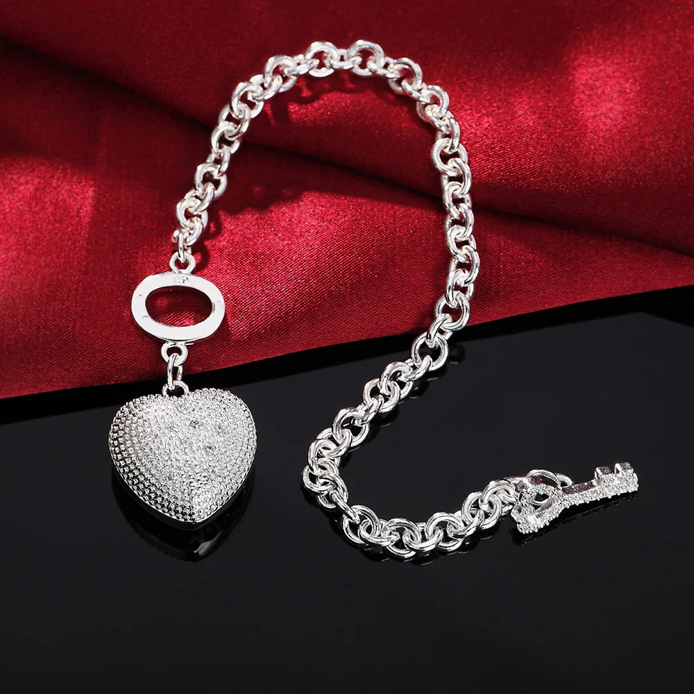 Очарование 925 стерлингового серебра для браслетов и ожерелий, набор украшений для женщин с украшением в виде кристаллов подвеской в виде сердца модные вечерние подарок обувь для девочек-школьниц